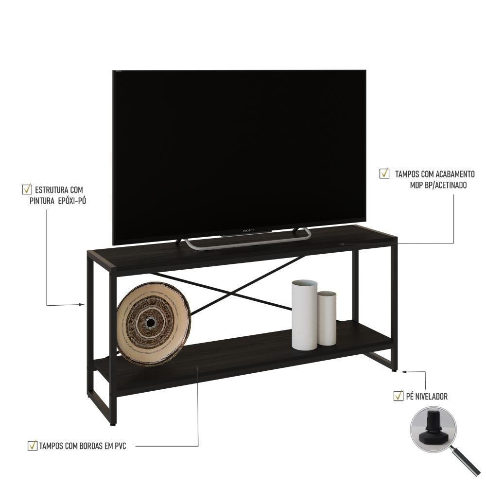 Rack P-tv Dynamica 120x30x56cm C-02 Prateleiras Preto ônix - Est.preta Preto ônix - Est.preta