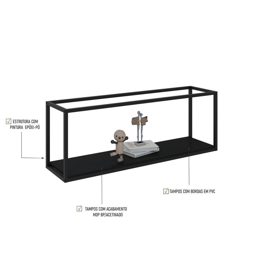 Nicho Aéreo Dynamica 120x30x42cm C-01 Prateleira Preto ônix - Est.preta Preto ônix - Est.preta