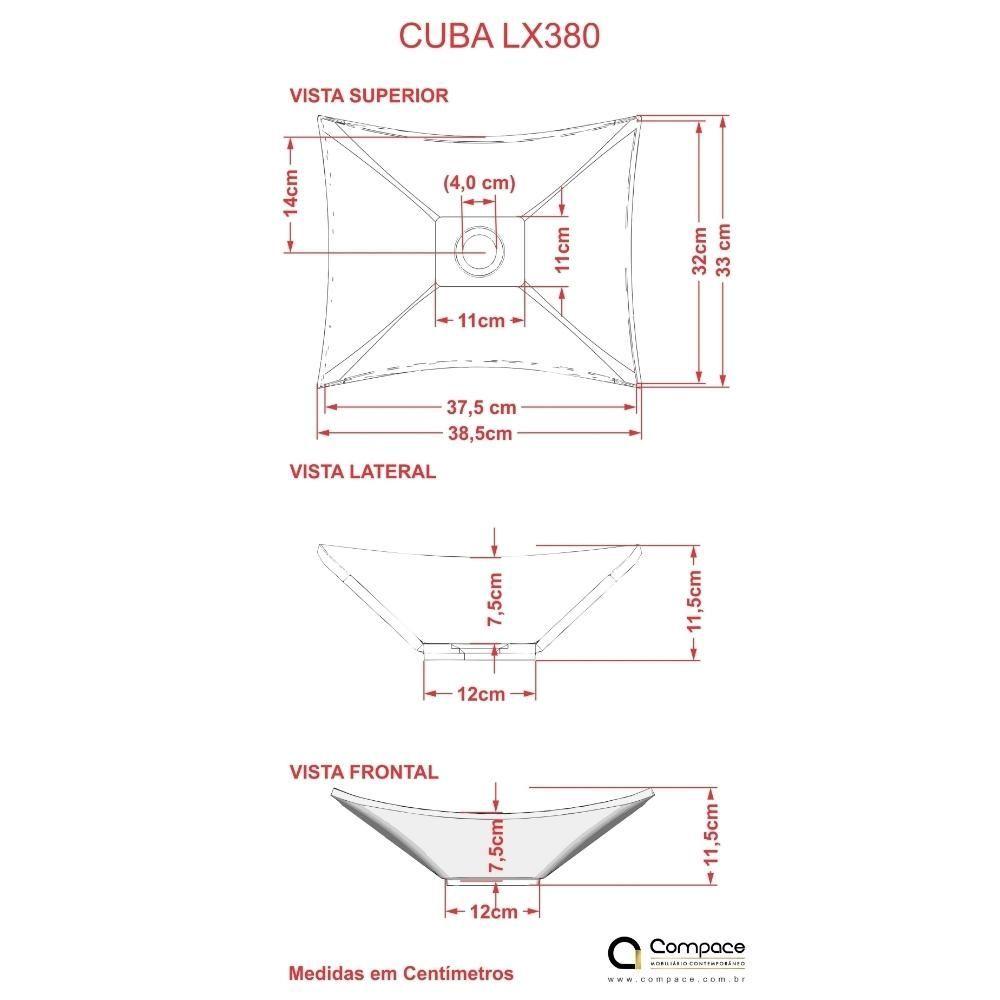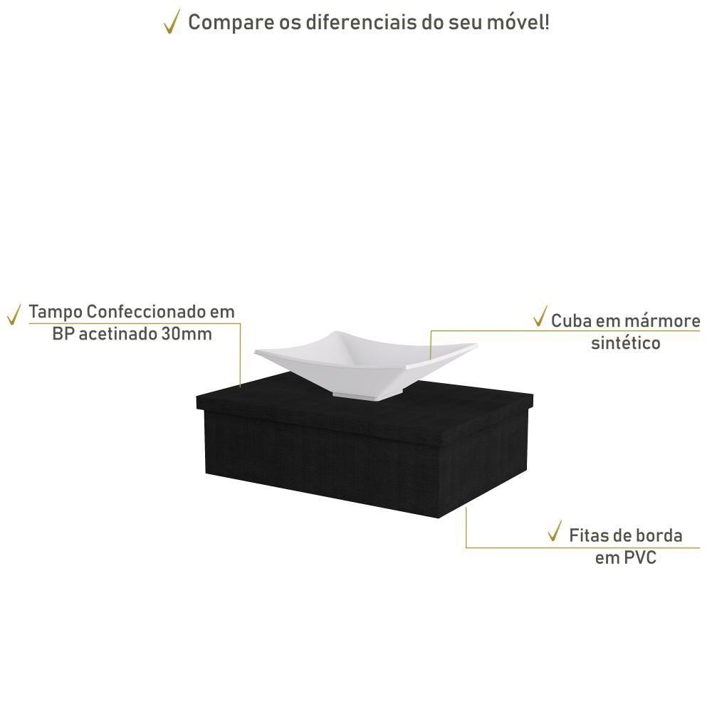 Conjunto Bancada C/cuba L38 Metrópole 600 Nogal Preto ônixSobre o ProdutoConjunto Bancada C/Cuba L38 Metrópole 600 Branco ChessDescrição do Produto:O Conjunto (Bancada + Cuba) Metrópole KTME600 é um produto compacto de design simples e moderno, projetado para pequenos espaços, perfeito para fazer parte da decoração do seu lavabo ou banheiro. Conta com uma cuba de apoio, além do suporte linha Metrópole é uma coleção de móveis modernos e com inúmeras possibilidades de composições, combinando design contemporâneo e muita funcionalidade. Diversas possibilidades de cores e modelos de cubas formam uma solução perfeita para as mais opções de decoração e projetos em ambientes de banheiro. É você quem decide!!!Itens Inclusos:1 Conjunto Bancada C/CubaDimensões dos Produtos:Bancada: 60 x 43 x 19 cmCuba 38,5 x 33 x 11,5 cmInformações Logísticas (Comp. X Prof. X Alt.) 63 x 47 x 26 cm - Peso: 11,55 KgPeso Total: 11,55 KgObservações:Não acompanha acessórios decorativos. Imagens meramente ilustrativas.Informações Técnicas / Características:- Cor do Produto: Branco Chess- Cor do Predominante: Branco- Marca: Compace- Modelo: KTME600- Linha: Metrópole- Material: Mdp - Acabamento: Perffect Acetinado- Escala de Brilho: Fosco- Fita de Borda: Pvc - Possui Gavetas: Não - Material do Puxador: Alumínio - Possui Pés: Não, suspenso - Possui Espelho: Não - Acompanha Cuba / Lavatório: Sim, de Mármore Sintético- Furação para Cuba / Lavatório: Não- Tipo da Cuba: Apoio- Cor da Cuba: Branca- Suporta Até (kg): 10 kg - Peso Lí.: 10,65Kg- Recomendações de Uso, Manutenção e Limpeza: Para a limpeza, utilize flanela seca ou pano macio levemente umedecido em água. Utilize um pano seco em seguida. Evite com produtos químicos (solventes, thinner, acetona, etc) e não utilize nenhum tipo de esponja de aço.- Necessita de Montagem: Sim / Acompanha Manual de Montagem- Complexidade da Montagem: Média: pode ser montado por mais de uma pessoa e/ou necessite de maior conhecimento para montagem.- Garantia: 6 meses- Outras Características: Montagem ível, o suporte toalheiro pode ser montado em qualquer um dos lados. Material: Mdp | Acabamento: Perffect Acetinado | Escala de Brilho: Fosco | Fita de Borda: Pvc | Tipo de Produto: Bancada para Banheiro | Fabricante: Compace | Comprimento: 60 | Largura: 42 | Limite de unidades por venda: É possível comprar até 1 unidade por venda. | Altura: 19 | Quantidade máxima de pedido: 1 | Profundidade: 42 | Preço tabelado: | Cor: Multicolorido | Certificação de teste externa: Não Aplicável | Baterias são necessárias?: false | Palavras-chave de Pesquisa: Não aplicável | Fonte de energia: Não aplicável | Peso do item: | Componentes incluídos: | Is Fragile: | Principais Características do Produto 1: | Principais Características do Produto 0: | Dimensões do item P x L x A: | Exige montagem: | da peça: | Principais Características do Produto 2: | do modelo: | de caixas: | Quantidade de itens: Cor: Preto Ônix