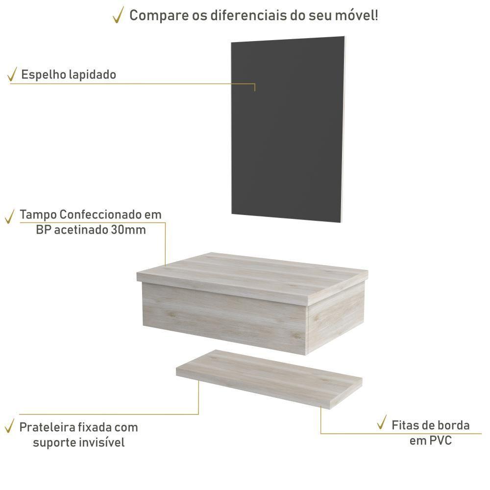 Conjunto Bancada, Prateleira E Espelheira Ktme607 Preto ônix Snow