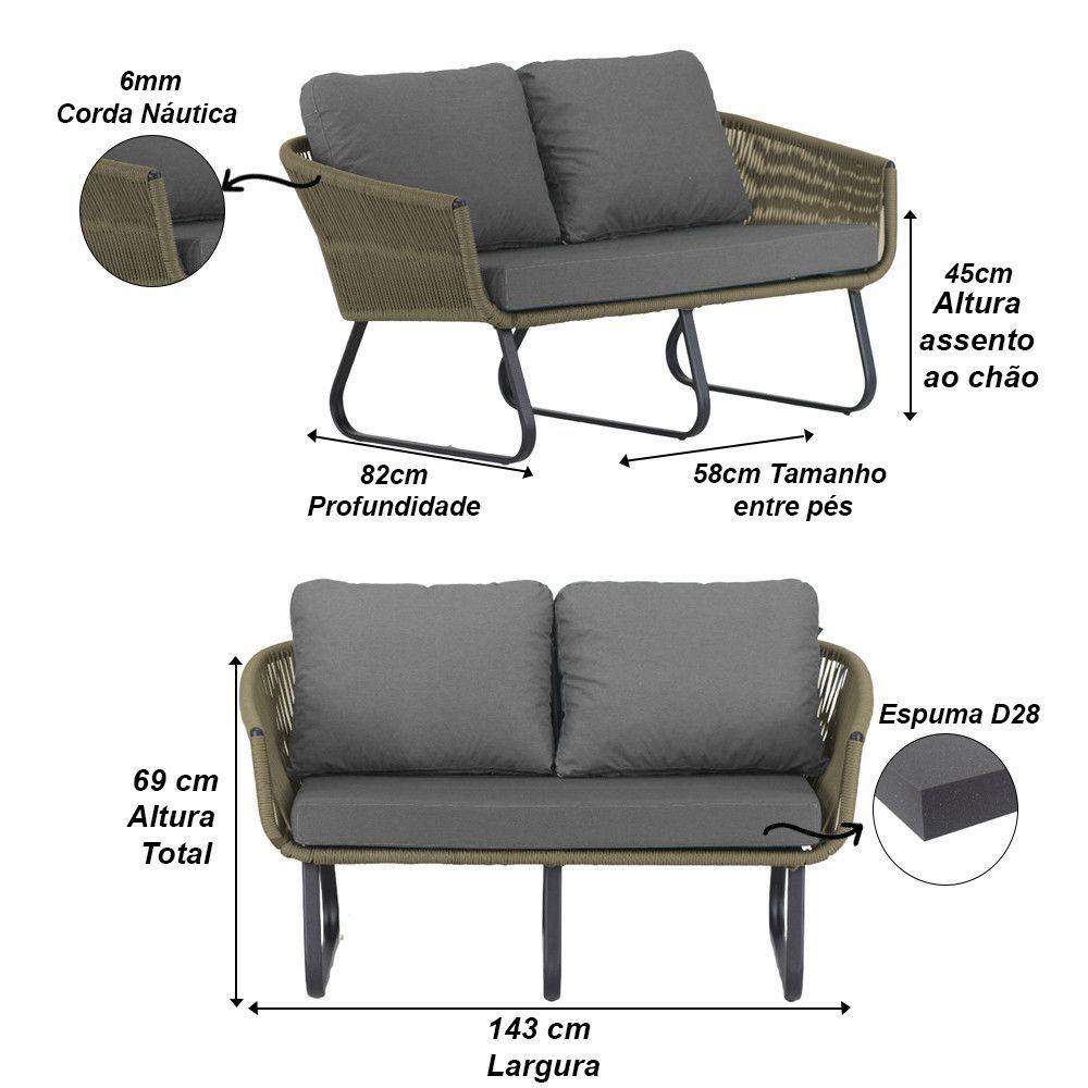 Conjunto Sofá E Poltronas Corda Alumínio Para área Rami