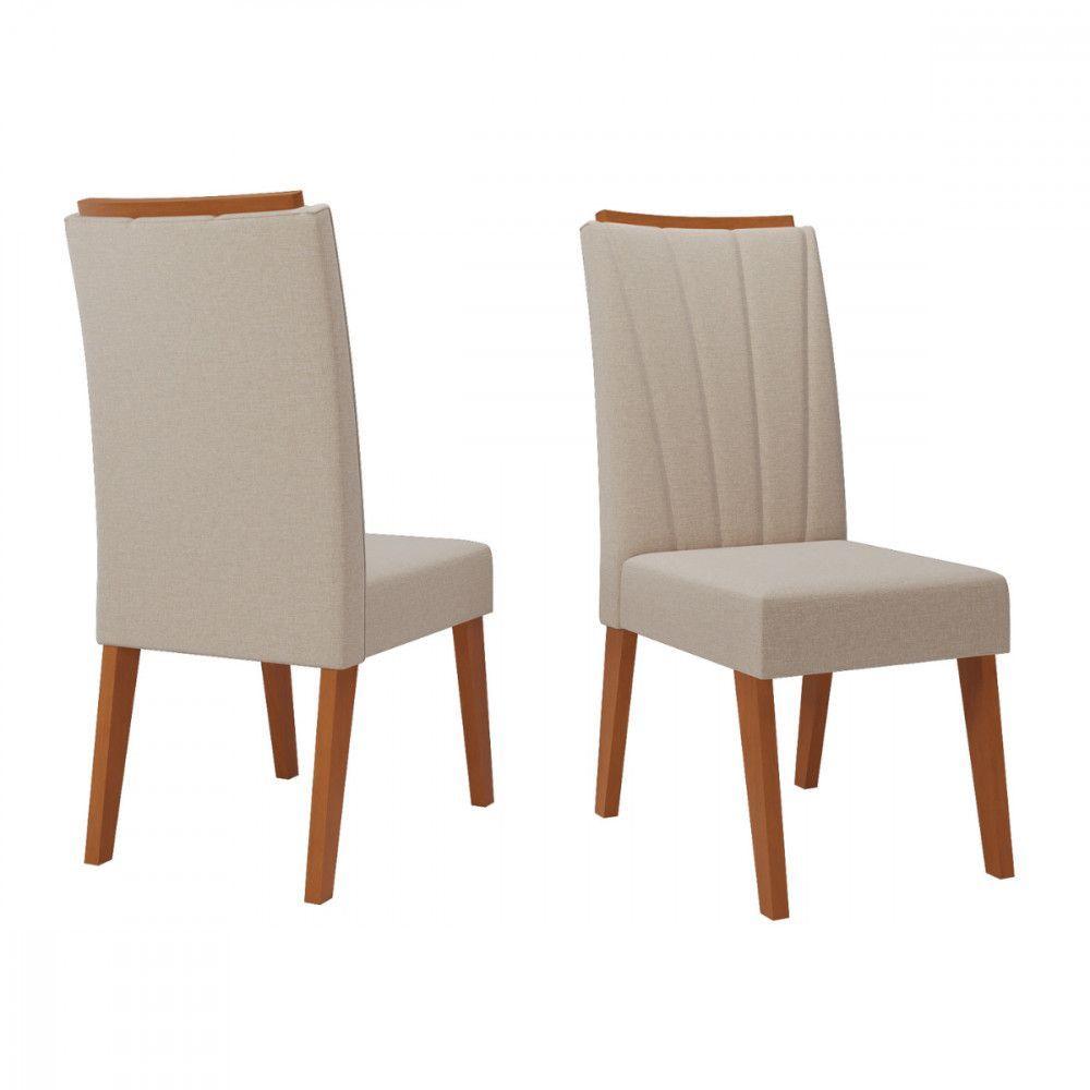 Kit 2 Cadeiras Safira Natural Tecido Linho Bronze Viero Linho Bronze