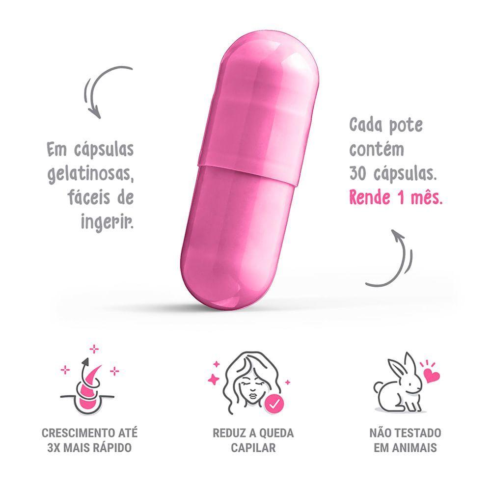 Happy Hair Nails Silício Inteligente - Suplemento Capilar 30 CápsulasO Happy Hair Nails Silício Inteligente - Suplemento Capilar 30 Cápsulas é um suplemento vitamínico e mineral da Happy Hair, marca brasileira reconhecida como líder em cuidados capilares, voltado para fortalecer cabelos, unhas e melhorar a saúde da pele. Formulado com 19 vitaminas e minerais, incluindo o ?silício inteligente?, promove crescimento capilar, redução de queda em até 96% e fortalecimento de unhas. A fórmula age de dentro para fora, nutrindo o bulbo capilar e é indicada para todos os tipos de cabelo. A embalagem com 30 cápsulas, em formato de pote compacto, é reciclável e ideal para um tratamento de 30 dias, sendo prática para uso diário em qualquer rotina.CaracterísticasNome do Produto: Happy Hair Nails Silício InteligenteMarca: Happy HairLinha: Suplemento CapilarVersão: OriginalCategoria: Suplemento AlimentarIngredientes Principais: Silício inteligente, biotina, ácido fólico, vitaminas A, B1, B2, B3, B5, B6, B12, C, D, E, cromo, selênio, ferro, fósforo, magnésio, zincoModo de Aplicação: Ingerir 1 cápsula por dia, preferencialmente com uma refeição e um copo de água.Especificações do ProdutoTipo de Produto: Suplemento AlimentarQuantidade: 30 cápsulasIndicação: Fortalecimento de cabelos, unhas e melhora da saúde da peleComposição:Principais Ativos: Silício inteligente, biotina (vitamina B7), ácido fólico (vitamina B9), vitaminas A, B1, B2, B3, B5, B6, B12, C, D, E, cromo, selênio, ferro, fósforo, magnésio, zincoOutros Ingredientes: Excipientes q.s.p. (pode variar conforme fabricante)Ocasiões: Uso diário, tratamento de queda capilar, fortalecimento de unhas frágeis, melhora da peleEmbalagem: Pote plástico com 30 cápsulas, reciclávelRecarregável: Não (embalagem padrão, sem sistema de refil)Benefícios do ProdutoEficácia: O silício inteligente age diretamente no bulbo capilar, reduzindo a queda em até 96% e acelerando o crescimento capilar em até 6x, segundo a marca; biotina e zinco fortalecem unhas, enquanto vitaminas A, C e E melhoram a saúde da pele, promovendo hidratação e elasticidade.Durabilidade: Cada pote de 30 cápsulas oferece um tratamento completo de 30 dias com uma dose diária; usuários relatam resultados visíveis em cabelos e unhas a partir de 3 semanas, com benefícios máximos após 3 meses de uso contínuo.Versatilidade: Indicado para todos os tipos de cabelo e unhas frágeis, compatível com anticoncepcionais e sem causar ganho de peso ou acne; ideal para homens e mulheres que buscam tratar queda capilar, fortalecer unhas ou melhorar a pele.Design/Praticidade: Pote compacto e reciclável facilita o transporte e armazenamento, sendo prático para uso diário ou viagens; a dose única diária simplifica a rotina, e a embalagem é funcional, mas não recarregável.O Happy Hair Nails Silício Inteligente 30 Cápsulas é ideal para quem busca um suplemento completo para fortalecer cabelos, unhas e melhorar a saúde da pele, com fórmula prática e eficaz para uso diário.Tipos de Pele - Pele de Todos os TiposNavegue por - Cosméticos Cruelty-Free Cosméticos VeganosLinha - Suplemento CapilarNome do produto - Happy Hair Nails Silício Inteligente