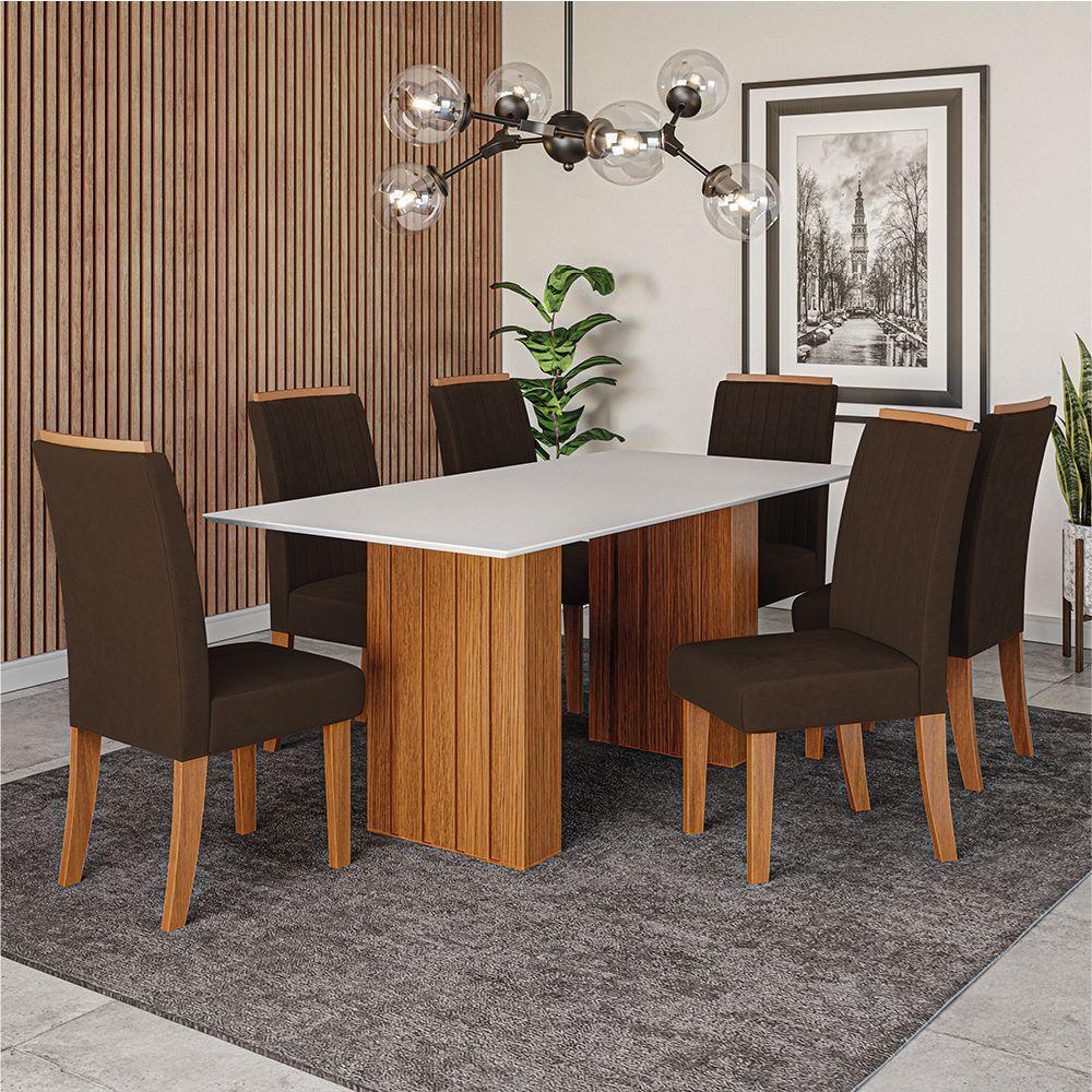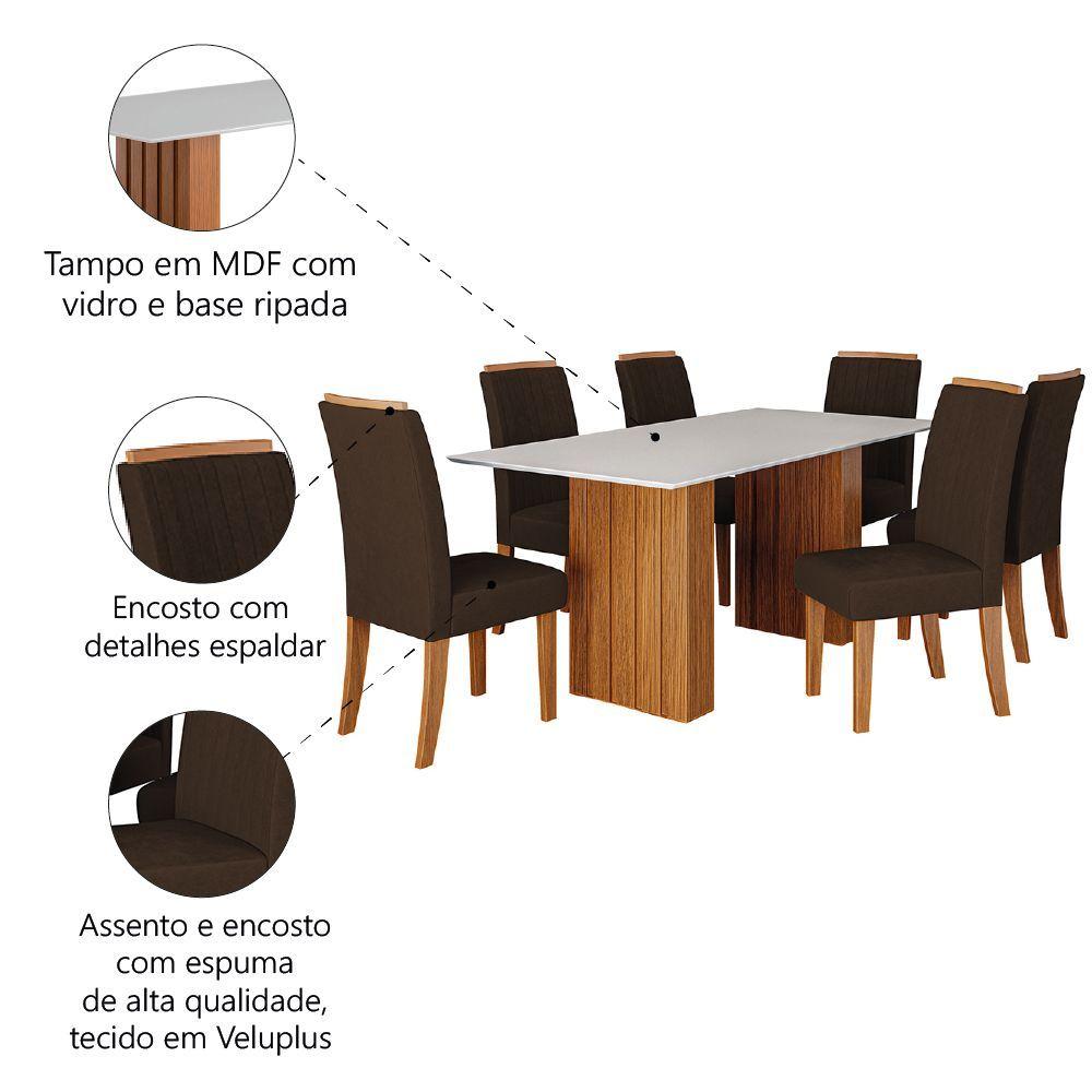Conjunto de Mesa Sala de Jantar Ripada com Tampo de Vidro Santiago 1,80m 6 Cadeiras Grécia – Dobuê – Madeirado/Chocolate