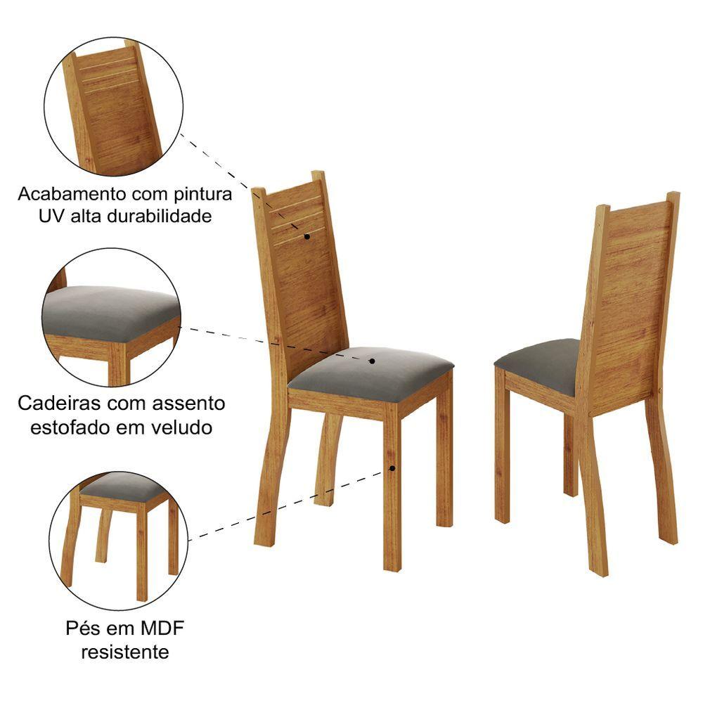 Conjunto 2 Cadeiras Veludo Sala De Jantar Kate Viero Madeirado / Cinza