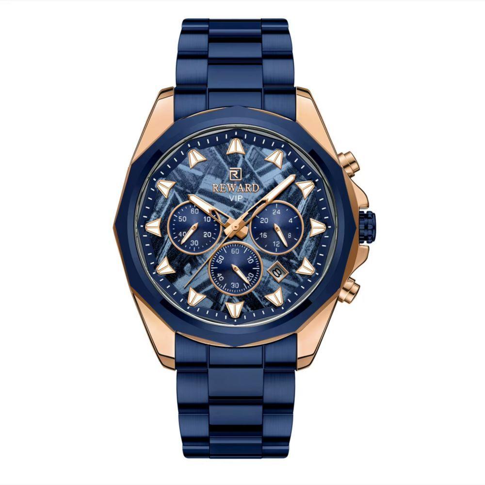 Relógio De Aço Inoxidável Masculino Com Cronógrafo à Prova D´agua Azul