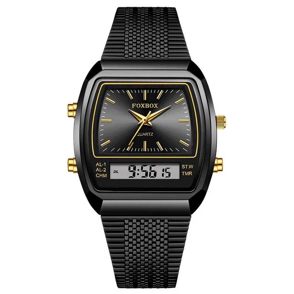 Relógio Esportivo Digital à Prova Dágua Em Aço Inoxidavel Masculino Preto FoscoDescubra a perfeita fusão entre tecnologia e estilo, um relógio de luxo que redefine o conceito de moda e funcionalidade para homens modernos. Este relógio digital é a sua melhor companhia em qualquer ocasião, combinando um design esportivo com a elegância necessária para se destacar em qualquer ambiente, seja no trabalho ou em aventuras ao ar livre. Com sua construção robusta e características inovadoras, este acessório é mais do que um simples marcador de tempo — é uma verdadeira declaração de estilo e eficiência.Cada detalhe foi cuidadosamente pensado para atender às suas necessidades. Equipado com uma tela de LED que oferece clareza incomparável, mesmo em condições de baixa luz, e um revestimento à prova d'água que garante proteção até 3 Bar de profundidade. A pulseira de aço inoxidável não só proporciona um ajuste confortável, mas também exala uma durabilidade excepcional. Este relógio de moda não é apenas um acessório, mas sim, um símbolo de sofisticação para o homem atual. Especificações[Resistência e Estilo] apresenta uma espessura de 11mm e um design tonneau, harmonizando durabilidade com um visual moderno.[Sofisticação Digital] Integrado com um mostrador digital de 40mm, ele oferece precisão com a suavidade de um toque futurista.[Praticidade Impecável] Equipado com um fecho dobrável com segurança, garante praticidade sem sacrificar o estilo, ideal para o homem em constante movimento.[Tecnologia Avançada] Seu movimento digital, combinado com funções como cronógrafo e exibição de semana, transforma-o em uma ferramenta imprescindível para otimizar o seu tempo.[Design à Prova] Com uma resistência à água de até 3 Bar e uma tela de hardlex, este relógio está preparado para acompanhar todas as suas aventuras diárias.