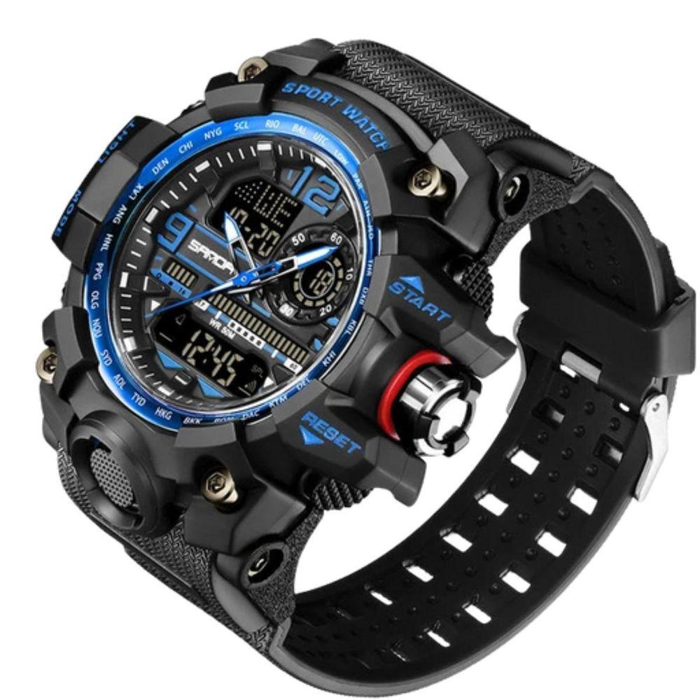 Relógio à Prova D'água 3133 à Prova De Choque Luminoso,data Automática AzulDescubra o estilo e a funcionalidade excepcionais do novo relógio masculino de 2024. Este relógio é o companheiro perfeito para aventuras e atividades do dia a dia, combinando um design atraente com um desempenho robusto. Feito para resistir aos desafios mais difíceis, ele se destaca pela resistência à água de até 50 metros e pelo estilo militar esportivo que agrada aos homens modernos e exigentes.Com resistência a choques e um visual contemporâneo, este relógio oferece uma leitura analógica e digital, garantindo precisão e facilidade de uso. A versatilidade deste acessório é complementada pelo cronômetro e cronógrafo, que são essenciais para medir o tempo com exatidão. Além disso, a funcionalidade de tela de LED e repetidor tornam-no indispensável para quem busca praticidade com um toque de sofisticação. Especificações: [Mostrador analógico-digital:] Este relógio oferece tanto a comodidade do mostrador digital quanto o charme do analógico, tudo em um display único. [Design robusto:] Com uma espessura de 15mm e uma largura de banda de 20 a 24mm, feito em resina de alta qualidade, este relógio foi projetado para aqueles que exigem durabilidade. [Funcionalidades inteligentes:] Inclui cronômetro, tela de LED e função de alarme, garantindo que você esteja sempre no controle de seus compromissos e atividades. [Resistência fantástica à água:] Este relógio é adequado para nadar, graças à resistência de até 5bar, o que o torna perfeito para atividades aquáticas. [Estilo esportivo sofisticado:] Com uma fivela prática e um aro em hardlex durável, combinado com o movimento de origem de alta tecnologia, este relógio garante estilo e confiabilidade em um só adornamento.