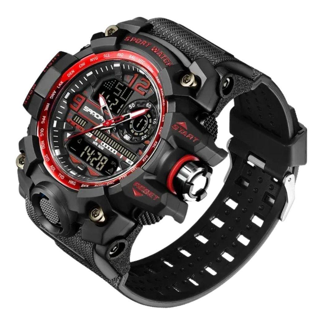 Relógio à Prova D'água 3133 à Prova De Choque Luminoso,data Automática VermelhoDescubra o estilo e a funcionalidade excepcionais do novo relógio masculino de 2024. Este relógio é o companheiro perfeito para aventuras e atividades do dia a dia, combinando um design atraente com um desempenho robusto. Feito para resistir aos desafios mais difíceis, ele se destaca pela resistência à água de até 50 metros e pelo estilo militar esportivo que agrada aos homens modernos e exigentes.Com resistência a choques e um visual contemporâneo, este relógio oferece uma leitura analógica e digital, garantindo precisão e facilidade de uso. A versatilidade deste acessório é complementada pelo cronômetro e cronógrafo, que são essenciais para medir o tempo com exatidão. Além disso, a funcionalidade de tela de LED e repetidor tornam-no indispensável para quem busca praticidade com um toque de sofisticação. Especificações: [Mostrador analógico-digital:] Este relógio oferece tanto a comodidade do mostrador digital quanto o charme do analógico, tudo em um display único. [Design robusto:] Com uma espessura de 15mm e uma largura de banda de 20 a 24mm, feito em resina de alta qualidade, este relógio foi projetado para aqueles que exigem durabilidade. [Funcionalidades inteligentes:] Inclui cronômetro, tela de LED e função de alarme, garantindo que você esteja sempre no controle de seus compromissos e atividades. [Resistência fantástica à água:] Este relógio é adequado para nadar, graças à resistência de até 5bar, o que o torna perfeito para atividades aquáticas. [Estilo esportivo sofisticado:] Com uma fivela prática e um aro em hardlex durável, combinado com o movimento de origem de alta tecnologia, este relógio garante estilo e confiabilidade em um só adornamento.