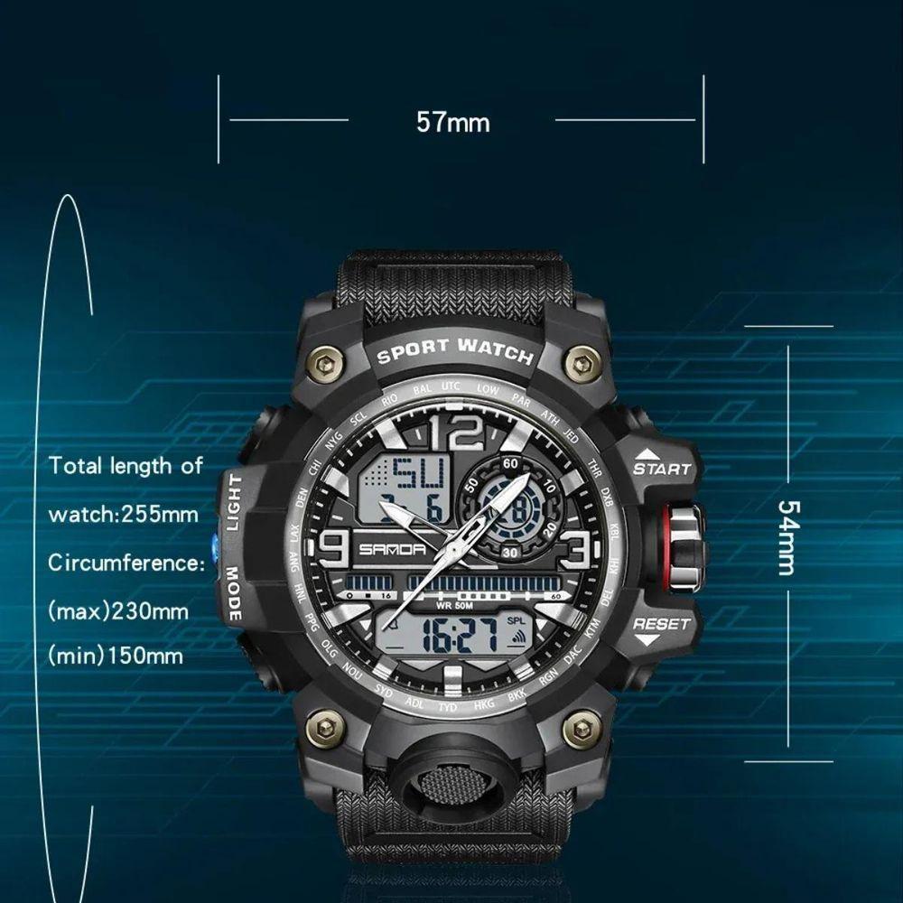Relógio à Prova D'água 3133 à Prova De Choque Luminoso,data Automática CinzaDescubra o estilo e a funcionalidade excepcionais do novo relógio masculino de 2024. Este relógio é o companheiro perfeito para aventuras e atividades do dia a dia, combinando um design atraente com um desempenho robusto. Feito para resistir aos desafios mais difíceis, ele se destaca pela resistência à água de até 50 metros e pelo estilo militar esportivo que agrada aos homens modernos e exigentes.Com resistência a choques e um visual contemporâneo, este relógio oferece uma leitura analógica e digital, garantindo precisão e facilidade de uso. A versatilidade deste acessório é complementada pelo cronômetro e cronógrafo, que são essenciais para medir o tempo com exatidão. Além disso, a funcionalidade de tela de LED e repetidor tornam-no indispensável para quem busca praticidade com um toque de sofisticação. Especificações: [Mostrador analógico-digital:] Este relógio oferece tanto a comodidade do mostrador digital quanto o charme do analógico, tudo em um display único. [Design robusto:] Com uma espessura de 15mm e uma largura de banda de 20 a 24mm, feito em resina de alta qualidade, este relógio foi projetado para aqueles que exigem durabilidade. [Funcionalidades inteligentes:] Inclui cronômetro, tela de LED e função de alarme, garantindo que você esteja sempre no controle de seus compromissos e atividades. [Resistência fantástica à água:] Este relógio é adequado para nadar, graças à resistência de até 5bar, o que o torna perfeito para atividades aquáticas. [Estilo esportivo sofisticado:] Com uma fivela prática e um aro em hardlex durável, combinado com o movimento de origem de alta tecnologia, este relógio garante estilo e confiabilidade em um só adornamento.