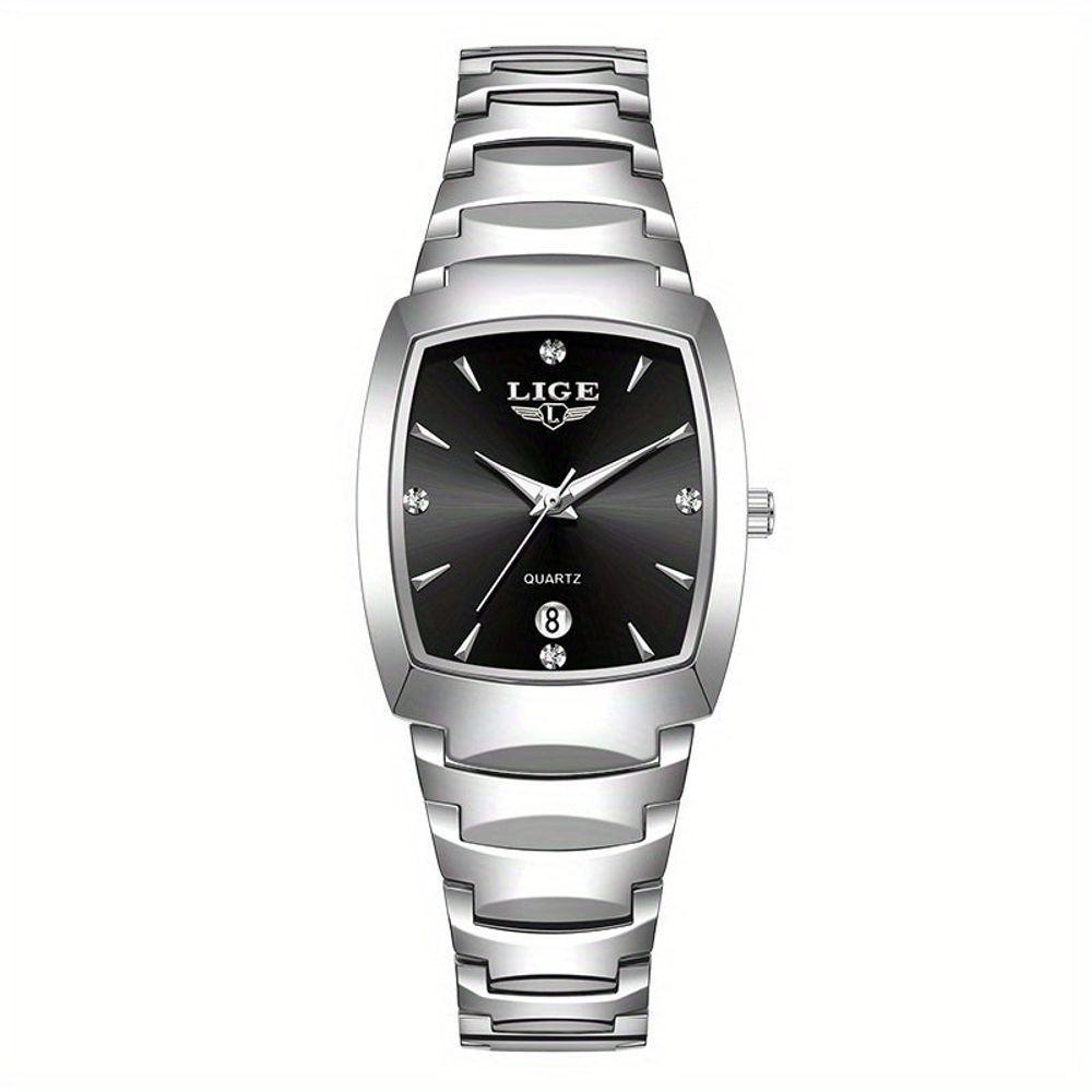 Relógio Lige Quadrado De Moda Com Quartzo Minimalistas Preto Prateado