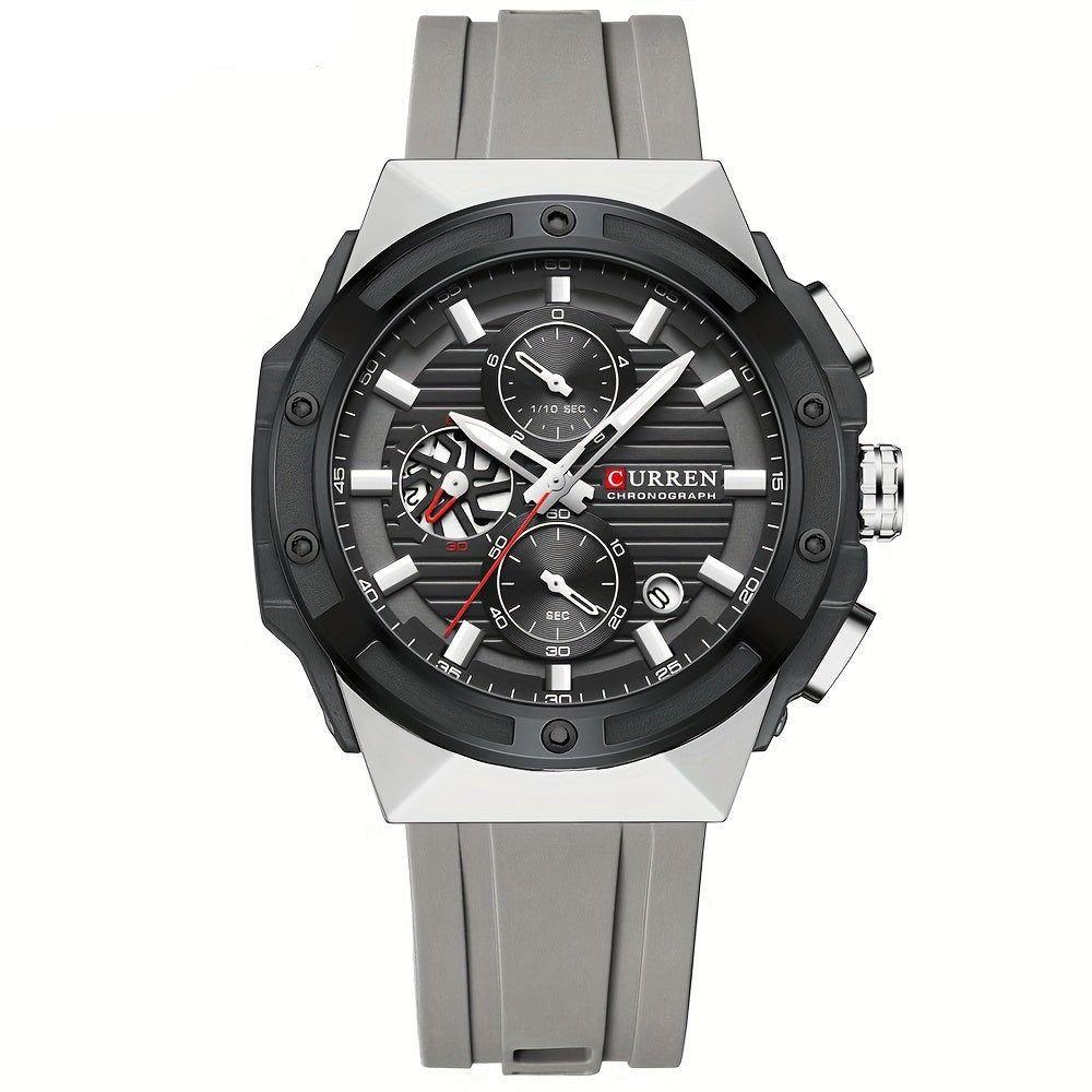Relógio Masculino Pulseira De Silicone Estilo Vintage Impermeavel CinzaEste elegante relógio de pulso esportivo, ideal para os amantes de moda com um toque vintage, vem com uma pulseira de silicone confortável e resistente. Seu design de mostrador criativo destaca-se por ser um acessório prático e sofisticado. Disponível em várias cores, este relógio versátil complementa qualquer look, do casual ao elegante, oferecendo tanto funcionalidade quanto estilo.O relógio é alimentado por um movimento de quartzo confiável, o que garante precisão e durabilidade. Com um nível de resistência à água, você pode usá-lo sem preocupações em diversas situações do dia a dia. O formato redondo atemporal da caixa, feito de uma liga de zinco, adiciona um toque clássico à sua coleção de acessórios. Especificações: [Tecnologia Precisa] Equipado com movimento de quartzo, este relógio garante uma precisão extraordinária, permitindo que você esteja sempre no horário certo com estilo. [Material Confortável] Sua pulseira de silicone é leve e ideal para o uso prolongado, proporcionando conforto ao longo do dia sem comprometer a elegância. [Design Funcional] A resistência à água IPX8 permite que o relógio seja usado em todas as condições climáticas, mantendo seu funcionamento impecável. [Estética Vintage] O design do mostrador e a forma clássica da caixa destacam-se pela fusão perfeita de um estilo retrô com toques modernos. [Cores Diversas] Disponível em uma gama de cores vibrantes e clássicas, este relógio pode ser adaptado ao seu estilo pessoal, sendo ideal para qualquer ocasião.