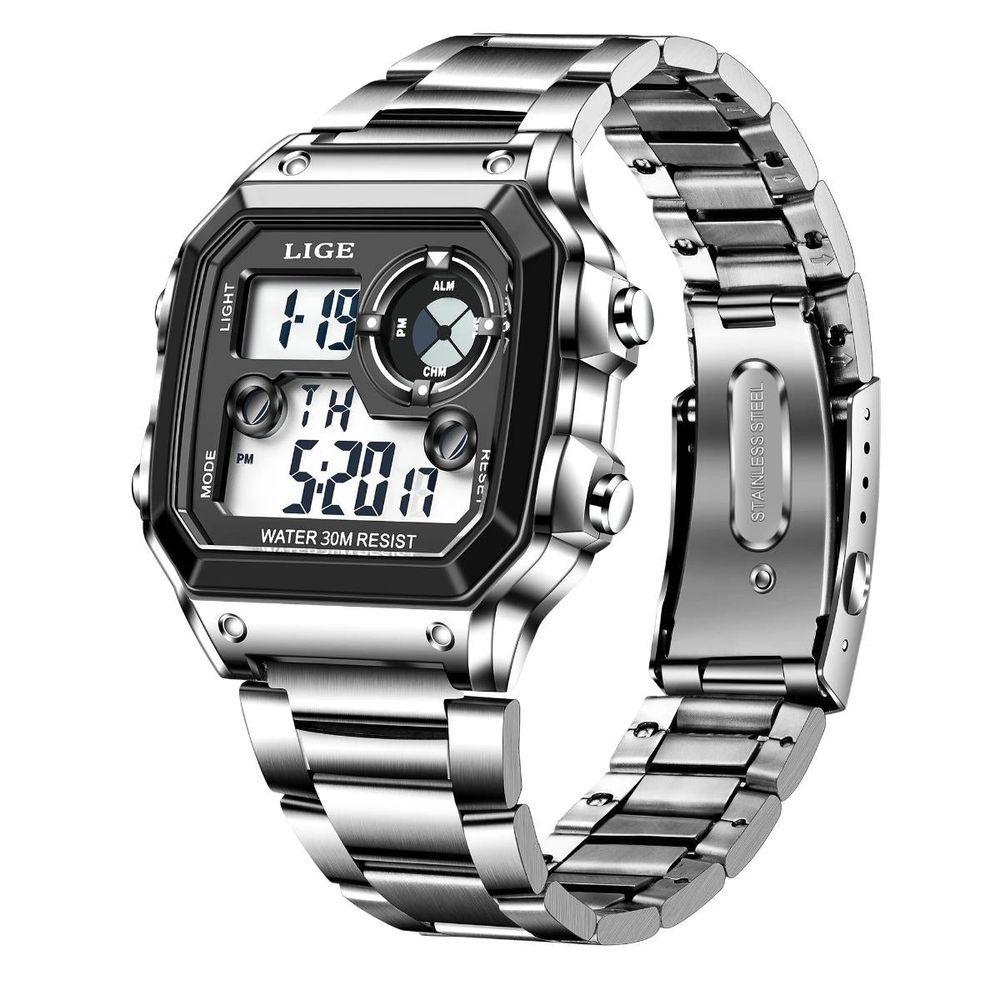 Relógio Moda Luxo Eletrônico Inoxidável Luminoso 8921 CinzaDescubra o equilíbrio perfeito entre elegância e funcionalidade com este relógio masculino de aço inoxidável. Este acessório luminescente apela para os amantes de moda e tecnologia ao integrar uma estética sofisticada com funções digitais. Ideal para homens que buscam unir estilo casual e esporte, esse relógio oferece um design quadrado único que o diferencia na multidão. Seu mostrador analógico-digital é altamente legível, e os materiais premium garantem durabilidade.Com resistência à água de 3Bar, você pode usá-lo sem se preocupar com dias chuvosos ou durante atividades aquáticas leves. Além do visual impressionante e resistente, o relógio inclui cronógrafo, calendário completo e funções de alarme, proporcionando um controle total do seu dia a dia. Aproveite a conveniência do fecho com botão oculto e desfrute do conforto proporcionado pela pulseira de aço inoxidável. Especificações [Design sofisticado:] Com mostrador quadrado e vidro Hardlex, este relógio ocupa um lugar único entre os acessórios de moda, garantindo um visual contemporâneo e fora do comum. [Conforto premium:] Pulseira de aço inoxidável de 23mm de largura e 23cm de comprimento que assegura um ajuste confortável e durável ao usuário. [Funções úteis:] Oferece recursos como luminosidade, luz de fundo, resistência a choques, cronógrafo e calendário completo, atendendo as necessidades modernas de qualquer homem ativo. [Durabilidade robusta:] Equipado com um material resistente, é construído para suportar o uso diário sem perder sua elegância. [Performance confiável:] Bateria inclusa e movimento digital preciso garantem que você nunca perca uma batida.