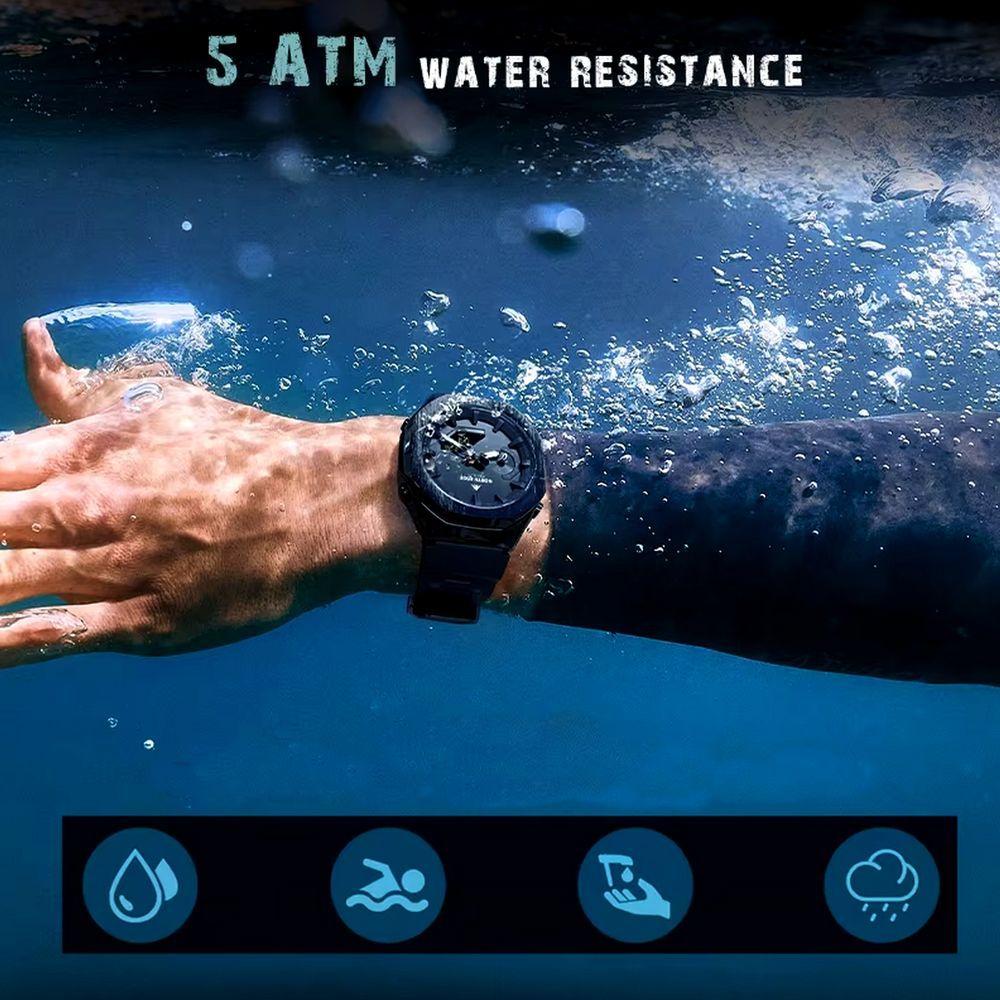Relógio Masculino Dual Display Mercury á Prova D´agua 50m Impermeavel Esportivo PretoDescubra uma nova era da precisão com o relógio esportivo masculino que combina o melhor da tecnologia analógica e digital. Este cronômetro impressionante é a fusão perfeita entre estilo e funcionalidade, pronto para acompanhar você em todas as suas aventuras. Projetado para o homem moderno que valoriza tanto a estética quanto o desempenho, este relógio é uma verdadeira obra-prima da engenharia de tempo.Equipado para enfrentar diversos desafios, desde mergulhos impactantes até eventos sofisticados, ele proporciona uma experiência temporal única. Os materiais de alta qualidade garantem durabilidade, enquanto o design arrojado o torna adequado para qualquer ocasião, seja no escritório ou nas profundezas do oceano. Especificações: [Durabilidade inigualável]: Mergulhe sem preocupações até 50 metros graças à resistência superior à água e ao vidro Hardlex que protege o visor contra arranhões e impactos, mantendo-o sempre impecável. [Estilo versátil]: O design esportivo com mostrador redondo em liga de alta qualidade e a confortável pulseira de silicone tornam este relógio um acessório versátil e elegante, adequado tanto para festas sofisticadas quanto para atividades ao ar livre. [Funcionalidades avançadas]: Equipado com luz de fundo, alarme e múltiplos fusos horários, este relógio é perfeito para os viajantes globais que necessitam de informações precisas em qualquer parte do mundo. [Desempenho contínuo]: Alimentado por uma bateria duradoura, você pode confiar no movimento quartzo-digital deste relógio para uma cronometragem eficaz, quer esteja numa reunião de negócios ou a fazer exercícios intensos. [Precisão nos detalhes]: Com um mostrador de diâmetro entre 40 e 44 mm e uma banda ajustável de 24 cm, este relógio foi minuciosamente desenvolvido para se ajustar perfeitamente ao seu pulso, oferecendo o máximo conforto e precisão.