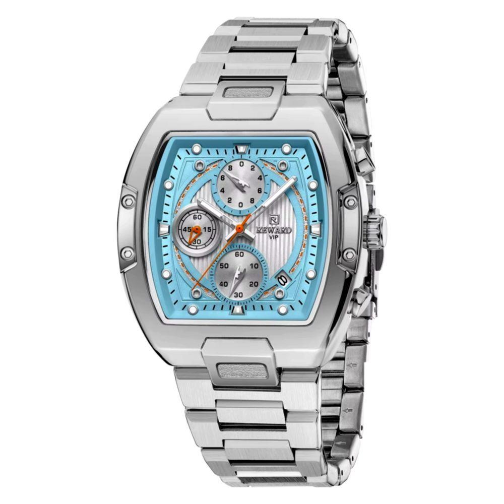 Relógio Masculino Multifuncional Grande Mostrador Luminoso à Prova D'água AzulDescubra o novo relógio masculino em forma de barril, perfeito para os homens modernos que buscam estilo e funcionalidade em um só acessório. Este relógio robusto é uma verdadeira obra-prima, combinando um design sofisticado com características de alto desempenho. O mostrador grande luminoso garante que você nunca perca a hora, seja qual for a iluminação, enquanto o calendário completo e o cronógrafo embutidos oferecem uma praticidade inigualável para o seu dia a dia.Criado para resistir aos desafios do cotidiano, este relógio à prova d'água é também uma declaração de moda, ideal para completar qualquer look, desde o casual até o de negócios. Com uma pulseira de aço inoxidável e um fecho com botão oculto, ele proporciona conforto sem abrir mão da elegância. Especificações: [Design impressionante] Este relógio de pulso de quartzo apresenta um elegante formato em tonneau, proporcionando um toque contemporâneo e arrojado no seu pulso. [Funcionalidade otimizada] Equipado com data automática, cronógrafo e um calendário completo, ele atende a todas as suas necessidades diárias de pontualidade e gestão de horários. [Resistência e durabilidade] Com profundidade de resistência à água de 3Bar, este relógio é ideal para atividades ao ar livre e pode suportar diferentes condições climáticas. [Conforto garantido] A pulseira, feita de aço inoxidável e medindo entre 25 a 29 mm, oferece um ajuste seguro e confortável para qualquer tamanho de pulso. [Estilo e versatilidade] Perfeito para qualquer ocasião, seja um evento formal ou um fim de semana casual, este relógio é a escolha certa para homens que valorizam o estilo e a funcionalidade.
