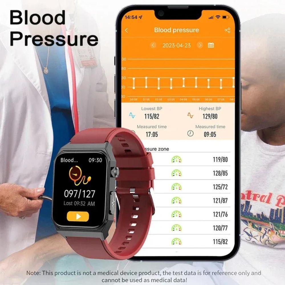 Relógio Ecg + Ppg , Sangue, Glicose, Pressão, Oxigênio, Smartwatch, 1,9 Vermelho
