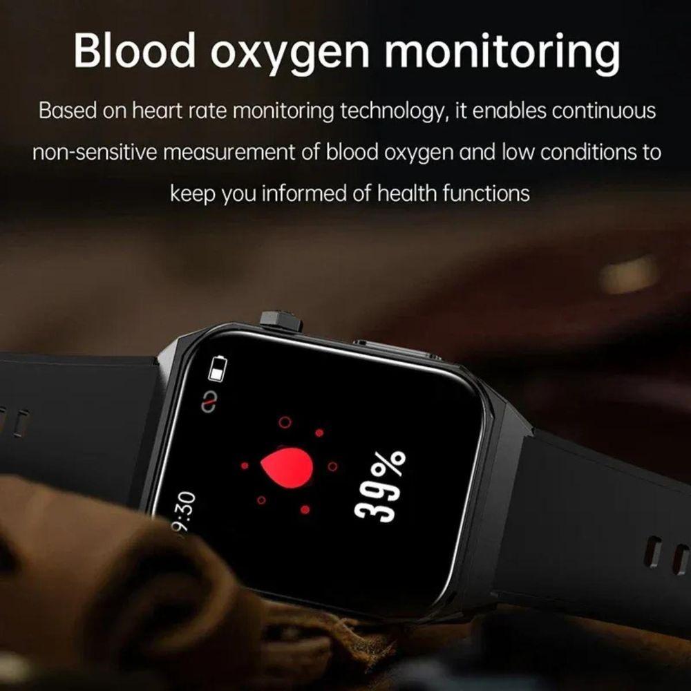 Relógio Ecg + Ppg , Sangue, Glicose, Pressão, Oxigênio, Smartwatch, 1,9 PretoO Relógio Digital Multifuncional é a fusão perfeita entre tecnologia e design esportivo, trazendo um universo de funcionalidades diretamente para o seu pulso. Equipado com tecnologia de ponta, ele oferece um acompanhamento detalhado da sua saúde e condicionamento físico, marcando presença como um item indispensável para quem busca mais controle e performance no dia a dia. Com uma tela touchscreen de 1,9 polegadas, sua interface intuitiva combina praticidade e eficiência, enquanto o design esportivo garante conforto e estilo.O smartwatch é a escolha ideal para aqueles que anseiam por inovar na maneira como monitoram seus dados vitais. Este acessório inteligente fornece métricas detalhadas de saúde, como ECG, PPG, frequência cardíaca, glicose, pressão sanguínea, oxigênio e temperatura corporal. Seja no trabalho, em uma corrida ou na academia, ele oferece informações valiosas para aprimorar seu bem-estar e performance esportiva, tudo com a conveniência de ser um acessório elegante e funcional. Especificações:[Tecnologia de ponta:] Monitoramento ECG + PPG para dados de saúde precisos e em tempo real, oferecendo uma compreensão aprofundada sobre sua saúde, facilmente acessível no seu pulso.[Design e conforto:] Com a pulseira de silicone, oferece um toque suave e ajuste confortável, acompanhando qualquer atividade sem perder o estilo.[Conectividade intuitiva:] Equipado com Bluetooth v5.1, garante uma conexão estável e rápida com seus dispositivos, permitindo fácil acesso a notificações e chamadas importantes.[Resistência e durabilidade:] Suporta IP68, o que torna o relógio resistente à poeira e a respingos, oferecendo confiabilidade em ambientes variados.[Funcionalidade estendida:] Além de medir saúde, possui alarme incorporado e a capacidade de efetuar chamadas telefônicas, tornando sua rotina mais prática e organizada.
