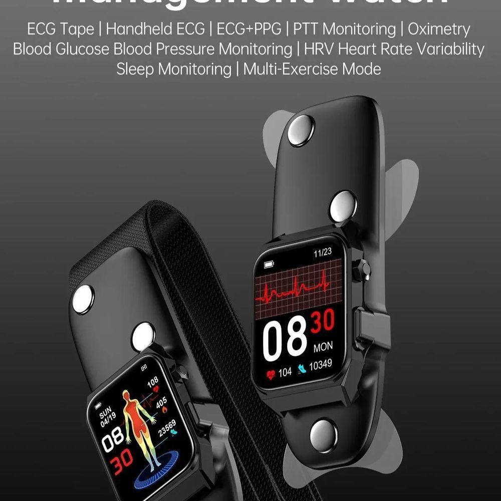 Relógio Ecg + Ppg , Sangue, Glicose, Pressão, Oxigênio, Smartwatch, 1,9 Preto