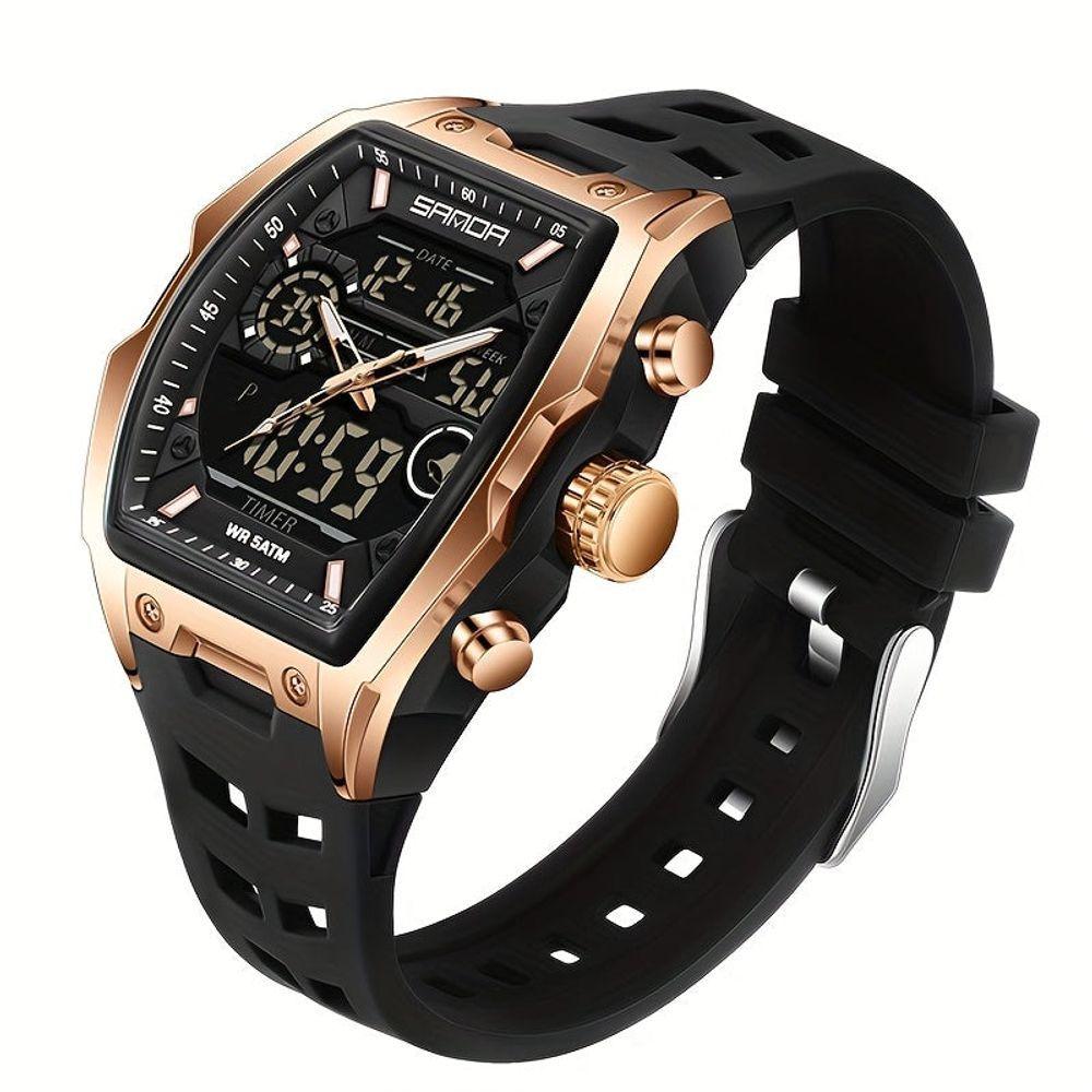 Relógio Casual Ecrã Eletrónico Duplo Com Capacidades De Cronógrafo Sanda Rosa