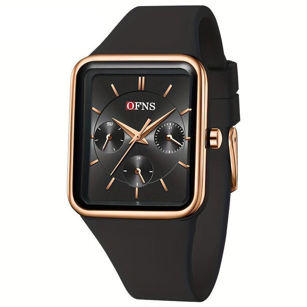 Relógio Quadrado De Quartzo Feminino Da Ofns, à Prova D'água Rosa PretoDescubra o companheiro perfeito para o seu dia a dia com este relógio quadrado de quartzo, projetado para homens e mulheres que valorizam estilo e funcionalidade. Sua resistência à água de 50 metros garante tranquilidade em qualquer situação, enquanto o visor de 24 horas oferece uma visão completa do seu tempo. O design casual, aliado a uma pulseira de silicone confortável, o torna ideal para uso diário, complementando qualquer look com um toque moderno.Este relógio é mais do que um acessório, é uma declaração de praticidade e sofisticação. Seja para o trabalho, para um passeio ou para uma noite especial, este relógio de quartzo se adapta a todas as suas necessidades, combinando durabilidade e um visual contemporâneo. Explore a versatilidade e a elegância deste relógio que se tornará um item indispensável no seu pulso.Especificações:[Design Moderno] Um relógio quadrado com um design contemporâneo, este modelo em quartzo apresenta um display de 24 horas, perfeito para quem precisa de precisão e visibilidade total. Sua construção robusta em resina sintética e a pulseira em gel de sílica proporcionam conforto e durabilidade para o uso diário. A resistência à água de 50 metros garante que seu relógio esteja pronto para acompanhar suas aventuras sem preocupações.[Funcionalidade Essencial] Este relógio de quartzo casual é movido por um movimento eletrônico preciso, alimentado por bateria tipo botão não recarregável. A facilidade de uso é um dos seus pontos fortes, com um método de condução que simplifica a operação. Ideal para quem busca praticidade, este modelo oferece um cronômetro integrado para auxiliar em suas tarefas e atividades cotidianas.[Conforto e Durabilidade] A pulseira em gel de sílica é suave ao toque e resistente, garantindo conforto prolongado mesmo após horas de uso. O material da correia foi escolhido pensando na versatilidade, permitindo que este relógio de quartzo seja seu parceiro em qualquer ocasião. A forma quadrada do mostrador adiciona um toque de originalidade ao seu estilo.[Estilo Versátil] Com um estilo casual definido, este relógio de quartzo é a escolha perfeita para quem busca um acessório que transita com facilidade entre diferentes ambientes e looks. O material do estojo em resina sintética contribui para a leveza e resistência do relógio, tornando-o uma opção prática e elegante para homens e mulheres.