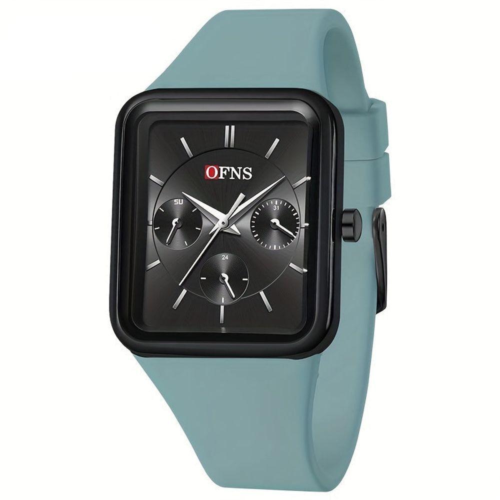 Relógio Quadrado De Quartzo Feminino Da Ofns, à Prova D'água AzulDescubra o companheiro perfeito para o seu dia a dia com este relógio quadrado de quartzo, projetado para homens e mulheres que valorizam estilo e funcionalidade. Sua resistência à água de 50 metros garante tranquilidade em qualquer situação, enquanto o visor de 24 horas oferece uma visão completa do seu tempo. O design casual, aliado a uma pulseira de silicone confortável, o torna ideal para uso diário, complementando qualquer look com um toque moderno.Este relógio é mais do que um acessório, é uma declaração de praticidade e sofisticação. Seja para o trabalho, para um passeio ou para uma noite especial, este relógio de quartzo se adapta a todas as suas necessidades, combinando durabilidade e um visual contemporâneo. Explore a versatilidade e a elegância deste relógio que se tornará um item indispensável no seu pulso.Especificações:[Design Moderno] Um relógio quadrado com um design contemporâneo, este modelo em quartzo apresenta um display de 24 horas, perfeito para quem precisa de precisão e visibilidade total. Sua construção robusta em resina sintética e a pulseira em gel de sílica proporcionam conforto e durabilidade para o uso diário. A resistência à água de 50 metros garante que seu relógio esteja pronto para acompanhar suas aventuras sem preocupações.[Funcionalidade Essencial] Este relógio de quartzo casual é movido por um movimento eletrônico preciso, alimentado por bateria tipo botão não recarregável. A facilidade de uso é um dos seus pontos fortes, com um método de condução que simplifica a operação. Ideal para quem busca praticidade, este modelo oferece um cronômetro integrado para auxiliar em suas tarefas e atividades cotidianas.[Conforto e Durabilidade] A pulseira em gel de sílica é suave ao toque e resistente, garantindo conforto prolongado mesmo após horas de uso. O material da correia foi escolhido pensando na versatilidade, permitindo que este relógio de quartzo seja seu parceiro em qualquer ocasião. A forma quadrada do mostrador adiciona um toque de originalidade ao seu estilo.[Estilo Versátil] Com um estilo casual definido, este relógio de quartzo é a escolha perfeita para quem busca um acessório que transita com facilidade entre diferentes ambientes e looks. O material do estojo em resina sintética contribui para a leveza e resistência do relógio, tornando-o uma opção prática e elegante para homens e mulheres.