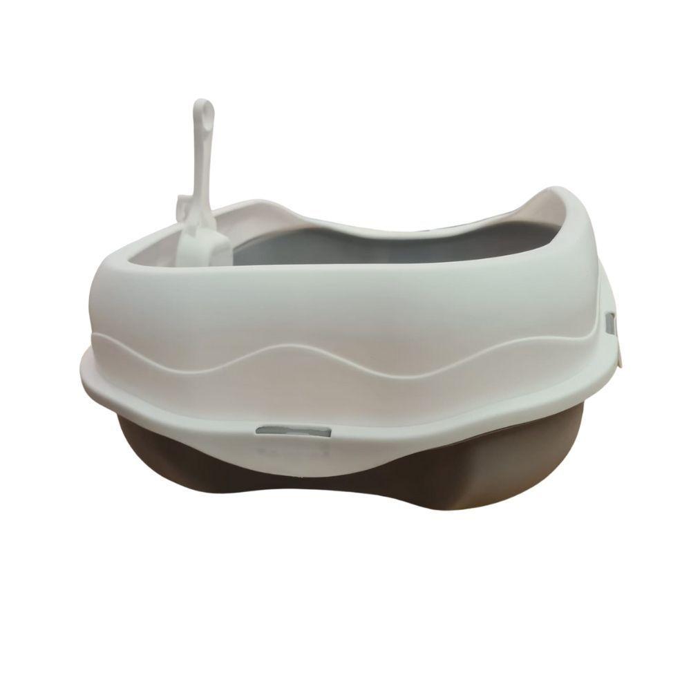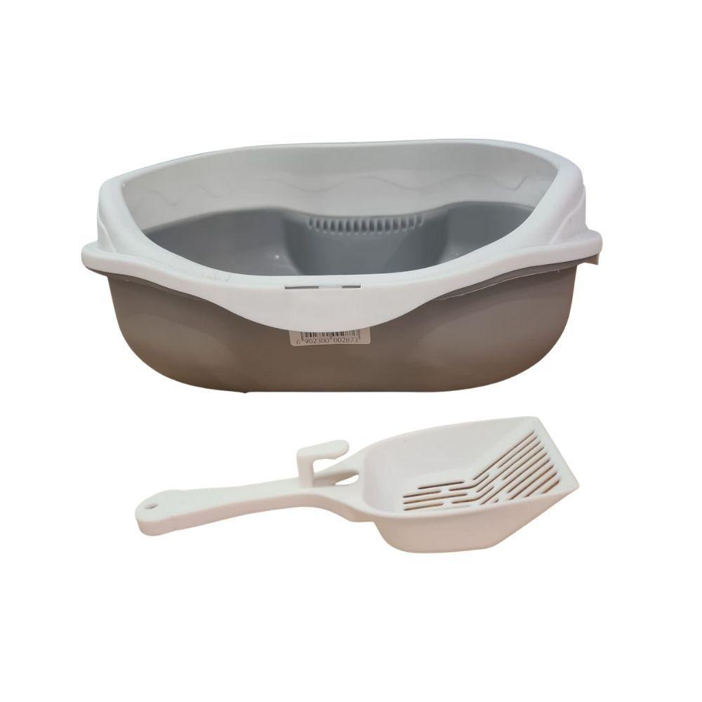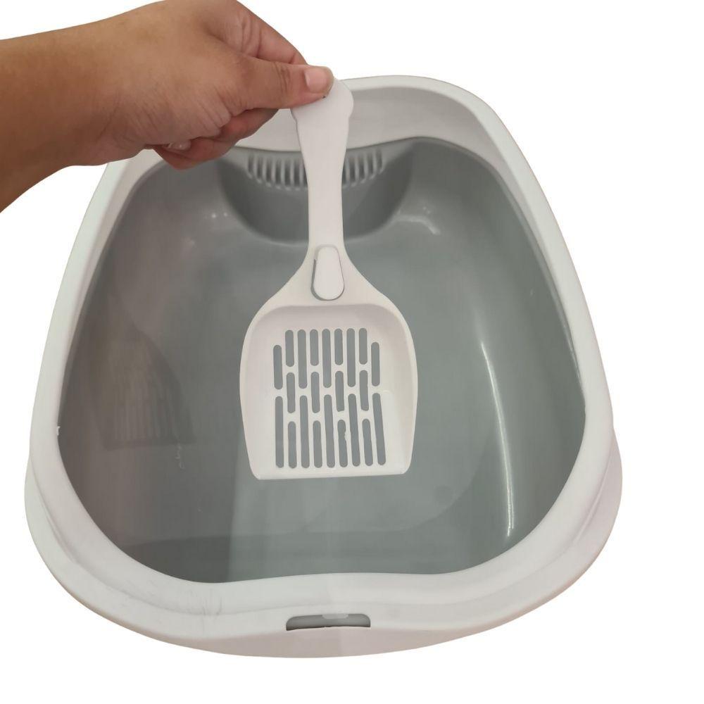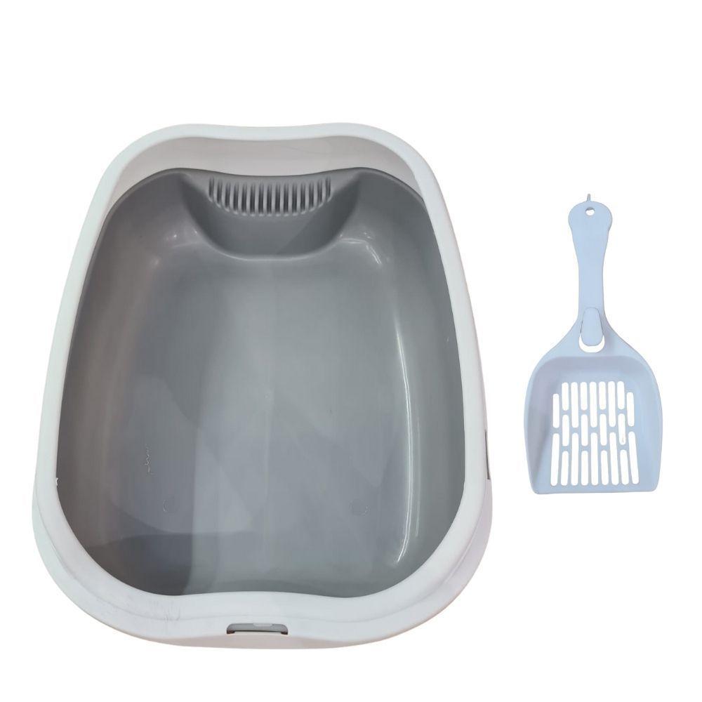 Caixa De Areia Banheiro Higiênica Bandeja Para Pets Gatos Com Borda + 1 Pá Coletora Tamanho Grande Cinza
