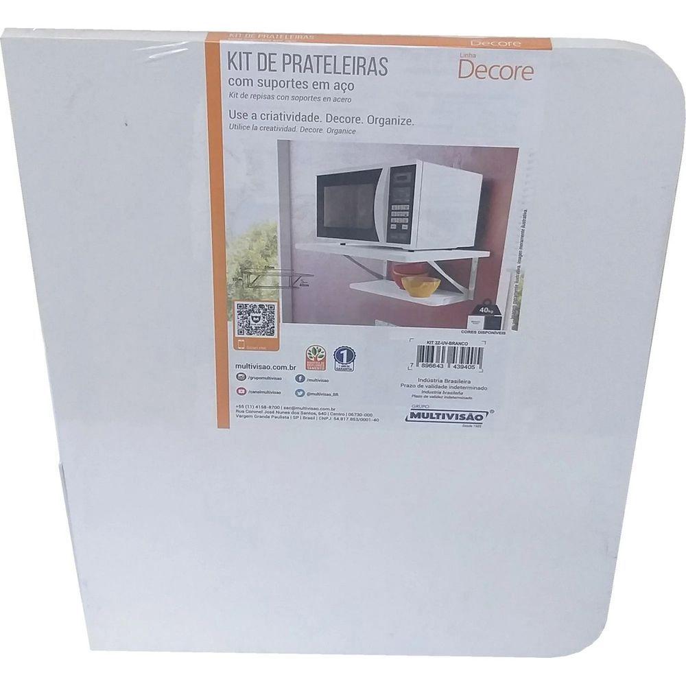 Kit Prateleiras Decore Multivisão BrancoModelo: DecoreO Kit Prateleiras Decore é a solução perfeita para organizar e decorar diversos ambientes. Fabricada em MDP com acabamento em pintura UV, oferece durabilidade e um visual moderno. Um dos detalhes desse modelo é a fita de bordo, que garante um acabamento impecável, tornando-a ideal para uso na cozinha, escritório ou qualquer outro espaço que necessite de praticidade e estilo.Cor: BrancoDimensões: do produto (A x L x P): 39,6 x 71,8 x 24,8 cmDimensões da embalagem (A x L x P): 7,9 x 42,3 x 74,0 cmInformação adicional:? Peso líquido do produto (kg): 9,5? Peso bruto do produto (kg): 10,35? Matéria-prima predominante: mdp / uv? Acabamento predominante: pintura uv / fita de bordo? Acompanha puxadores: não? Acompanha encarte: sim? Forma de limpeza: pano levemente umedecido
