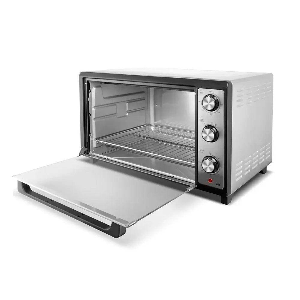 Forno 65L Philco Elétrico Dourador 106101008 Preto 110VForno Elétrico de Bancada 65L Philco Dourador 2000WSe você busca um forno elétrico espaçoso, potente e cheio de funcionalidades para tornar suas receitas ainda mais saborosas, o Forno Elétrico de Bancada 65L Philco Dourador é a escolha perfeita! Com capacidade de 65 litros e potência de até 2000W, ele permite assar, gratinar, aquecer e dourar seus pratos com eficiência e rapidez. Seja para preparar carnes suculentas, pães crocantes ou sobremesas irresistíveis, este forno elétrico garante resultados incríveis com praticidade. Confira mais detalhes:Espaço de sobra!Com 65 litros de capacidade, este forno elétrico acomoda assadeiras maiores e permite preparar refeições completas para toda a família. Ideal para quem gosta de cozinhar sem restrições de espaço, ele possibilita assar grandes porções de carne, frangos inteiros e diversos tipos de massas ao mesmo tempo.Potência e controle de temperatura!O Forno Elétrico Philco oferece um controle preciso de temperatura, variando entre 90ºC e 230ºC, permitindo preparar desde pratos delicados até receitas que exigem calor intenso. Sua potência de 1800W (110V) ou 2000W (220V) garante cozimento rápido e uniforme, enquanto a função dourador adiciona aquele toque especial de crocância aos seus alimentos.