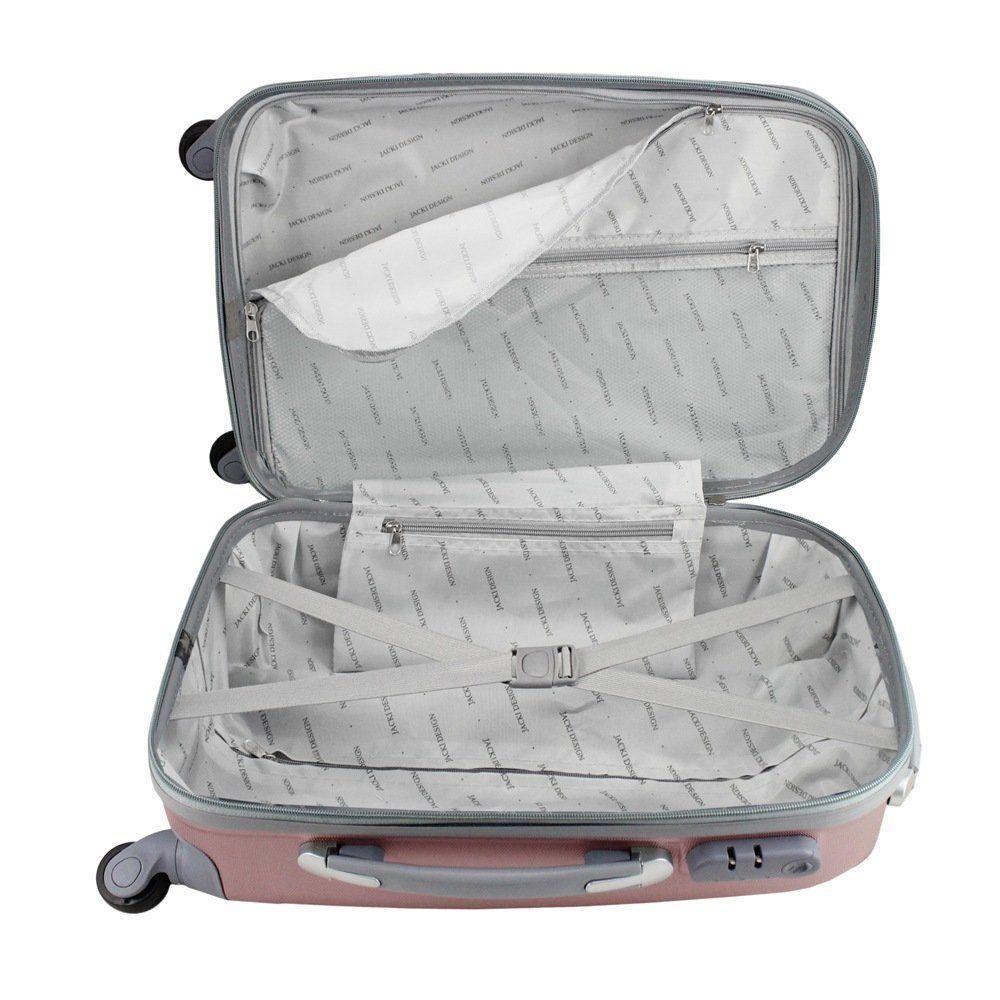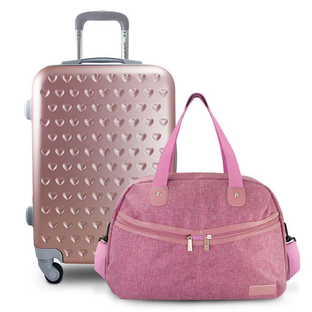 Kits De Malas De Bordo E Bolsa De Viagem RosaKits de Malas de Bordo e Bolsa de Viagem Rosa -KIT VIAGEM: MALA DE BORDO + BOLSA DE VIAGEMMala de Bordo Jacki DesignPerfeita para viagens rápidas ou escapadas de fim de semana, esta mala de bordo une praticidade e elegância. Seu design com rodinhas giratórias de 360 graus garante mobilidade total, enquanto a alça retrátil com trava de segurança oferece conforto e estabilidade durante o deslocamento. O interior totalmente forrado foi pensado para facilitar sua organização: compartimentos específicos, elásticos ajustáveis e espaço suficiente para roupas, acessórios e itens essenciais. Construída em material ABS resistente e leve, ela oferece proteção contra impactos e riscos, mantendo seus pertences seguros em qualquer aventura.Bolsa de Viagem Be YouElegante e multifuncional, a bolsa Be You é um acessório que combina com qualquer estilo de vida. Com amplo espaço interno e detalhes sofisticados, ela é perfeita para o dia a dia, academia ou viagens de curta duração. Sua alça de mão confortável e a alça lateral removível oferecem versatilidade para transportar da melhor forma possível, seja na transversal, no ombro ou na mão. Além de seu visual moderno, a bolsa é feita com materiais de alta qualidade, garantindo durabilidade e resistência ao uso diário.Mais funcionalidades e dicas:Ideal para quem gosta de manter tudo organizado e acessível durante a viagem.Combinação perfeita para quem busca estilo sem abrir mão da praticidade.Design compacto, mas com espaço suficiente para caber itens essenciais, até mesmo para viagens de até três dias.Um presente ideal para quem valoriza qualidade e elegância na hora de viajar.Acompanha o produto: - 1 MALA 1 BOLSA