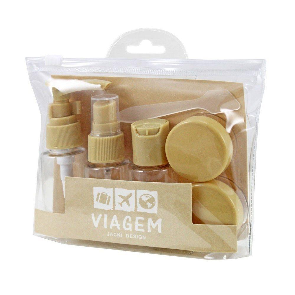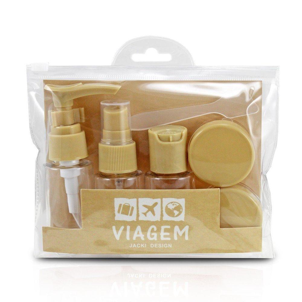 Kit De Bolsa Transparente E Frascos De Viagem De 7 Peças Bege