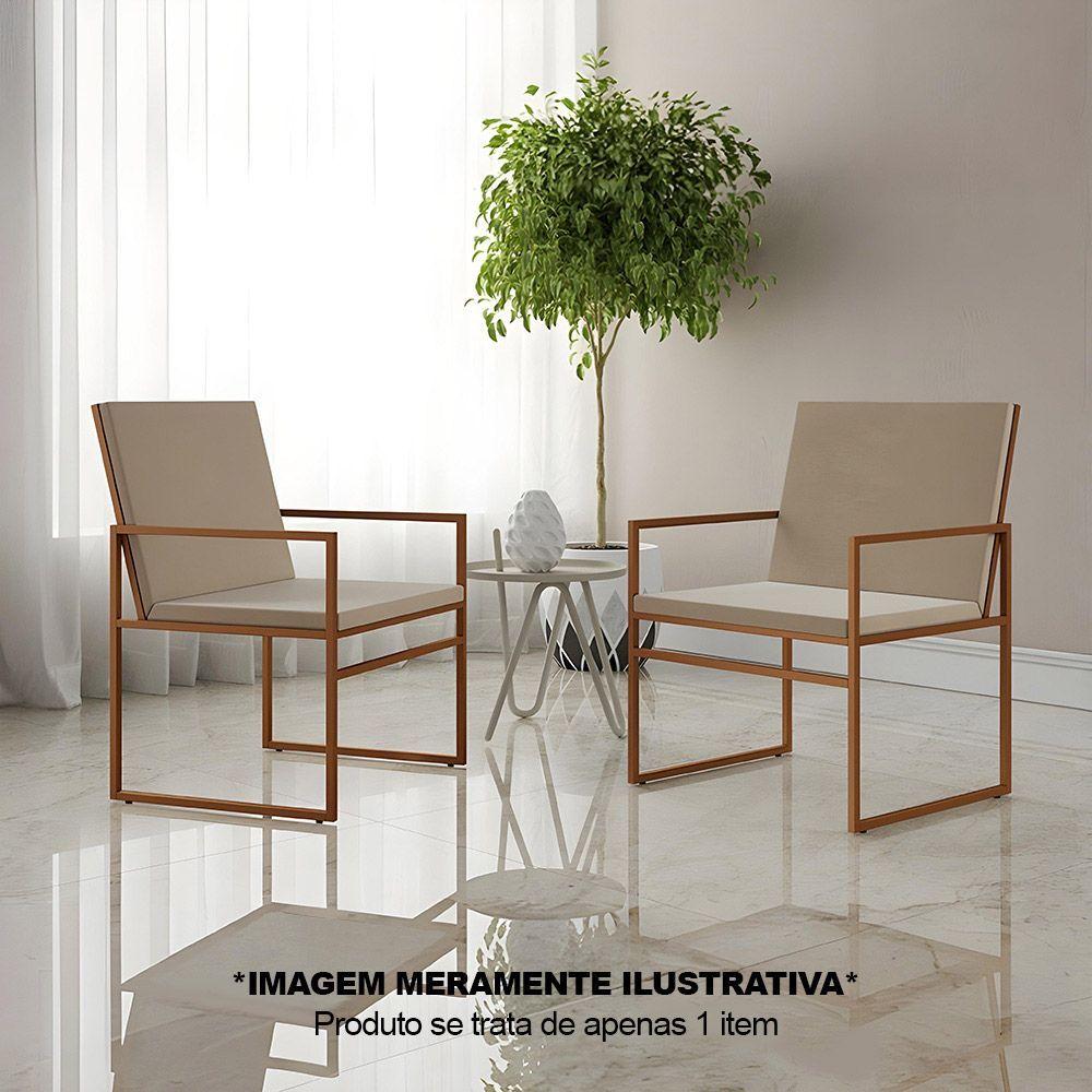 Poltrona Industrial Estofada Isa Veludo Bege Base Cobre