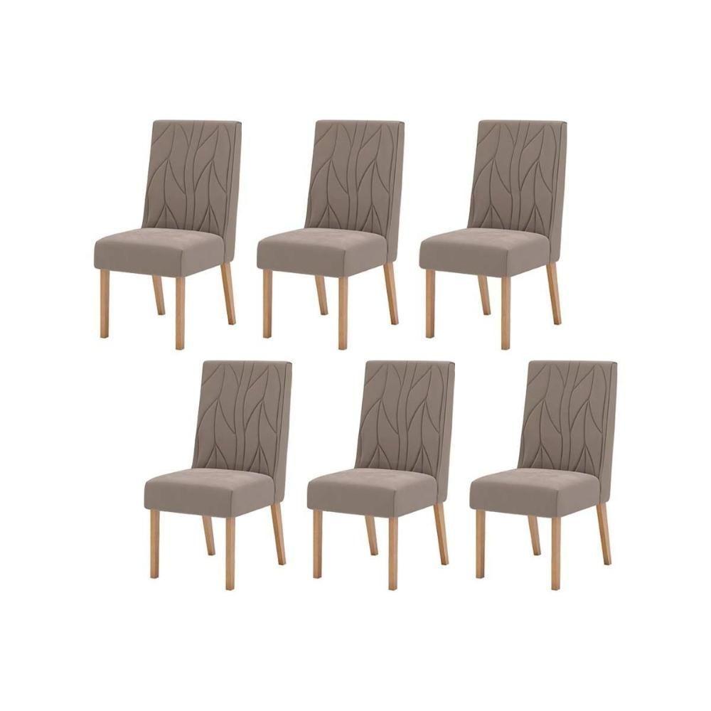 Cadeira Sala de Jantar Eloá Kit 6 Un Nature/Veludo Light Marrom Amêndoa - Henn