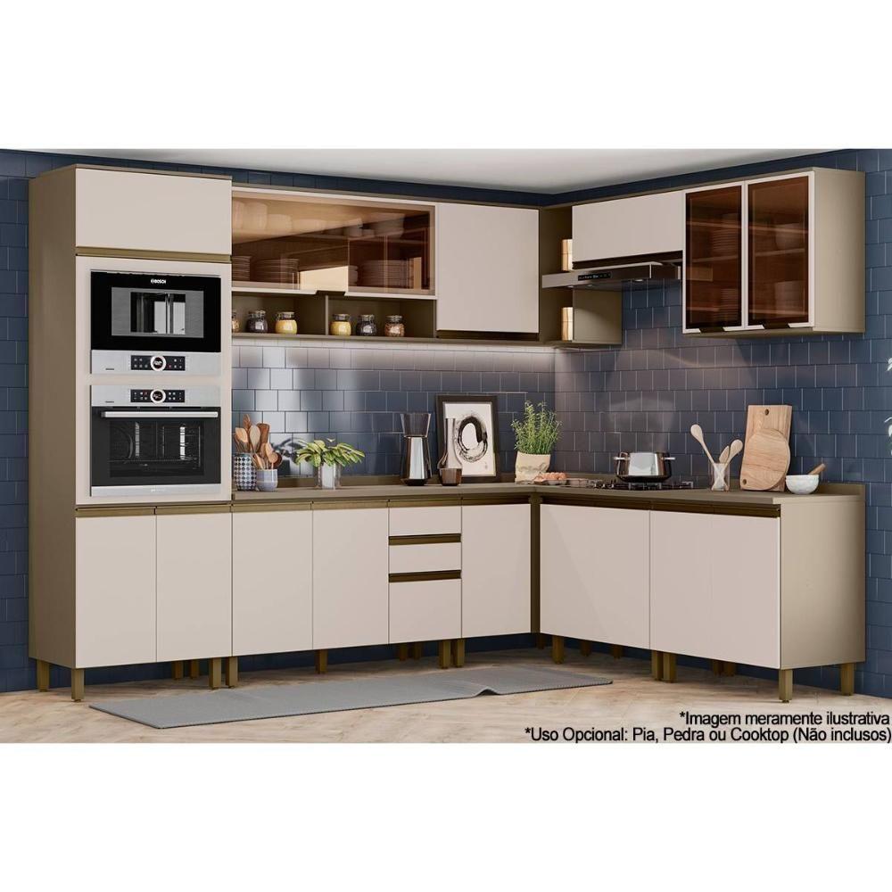 Cozinha 13 Peças (4 Armários + 1 Paneleiro + 4 Balcões + 4 Complementos) C6p05 Duna-cristal