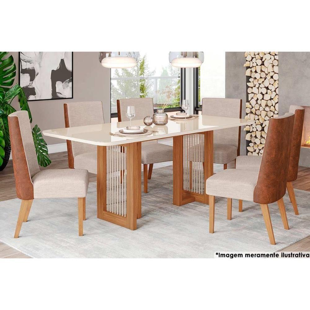 Cadeira Sala de Jantar Anne Kit 6 Un Nature/Courano/Creme - Henn