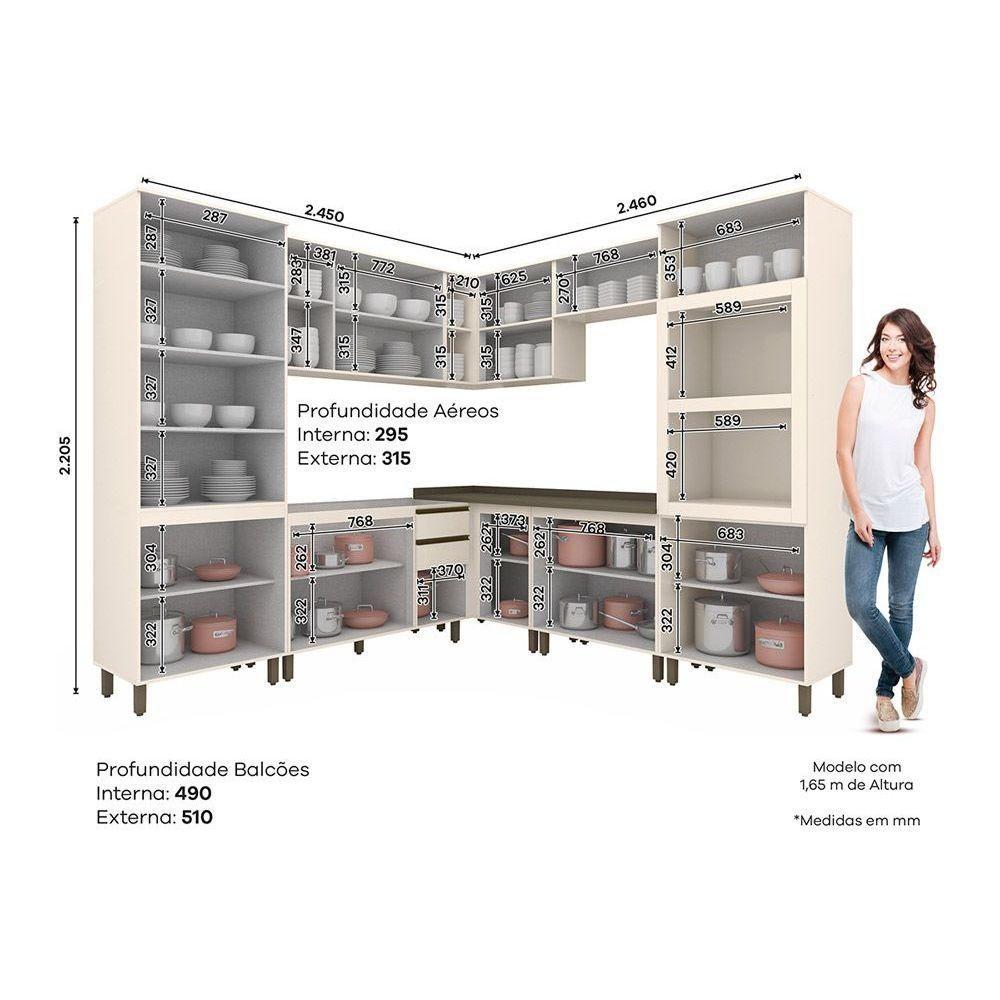 Cozinha Modulada Connect 10 Peças 3 Aéreos + 3 Balcões + 2 Paneleiros + 2 Complementos C5p94 Off White2 Aéreos + 1 Balcão + 1 Complemento