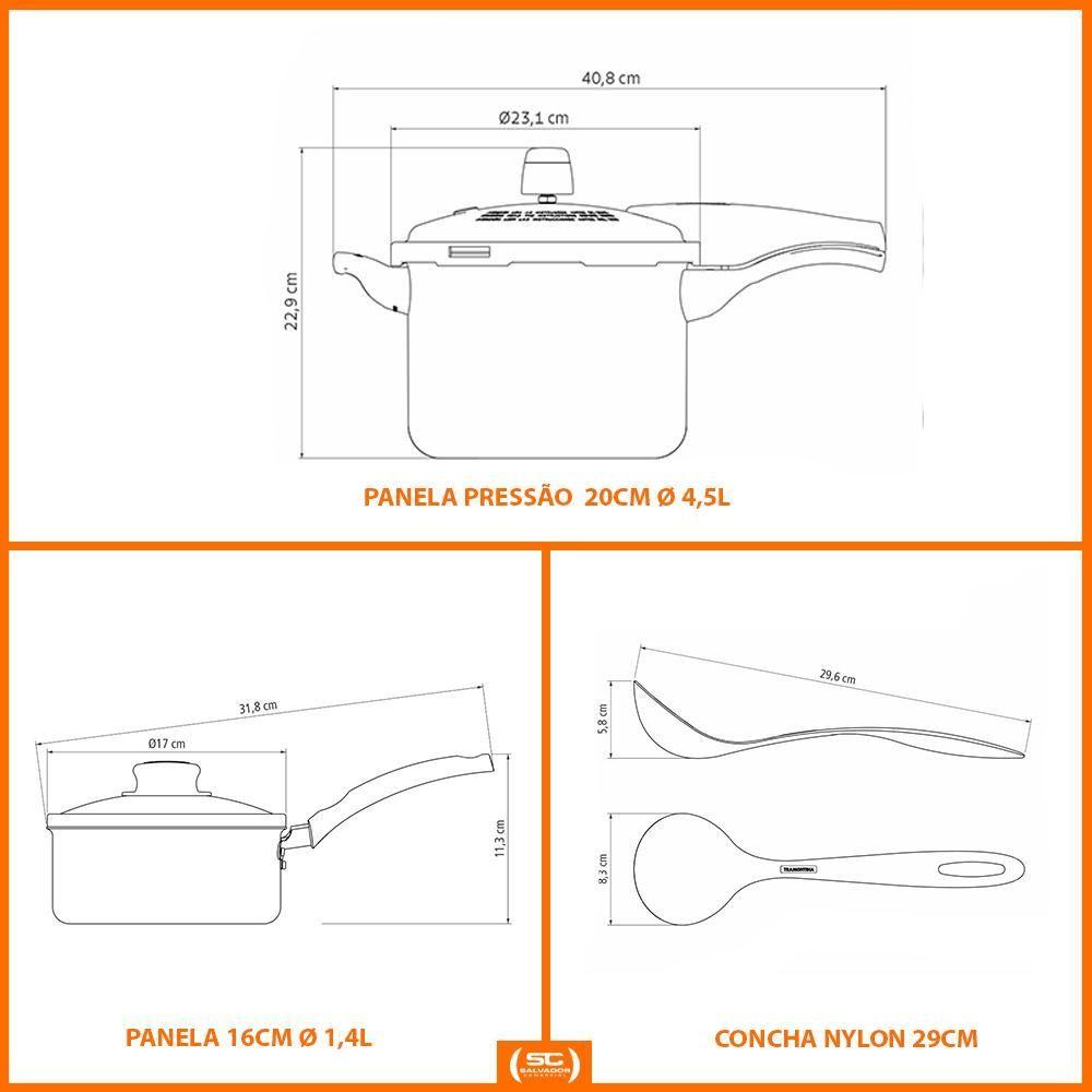 Panela De Pressão Effect 4,5l E Panela Turim Alumínio Antiaderente 1,4l Ptc + Concha - Tramontina