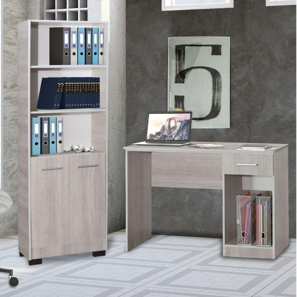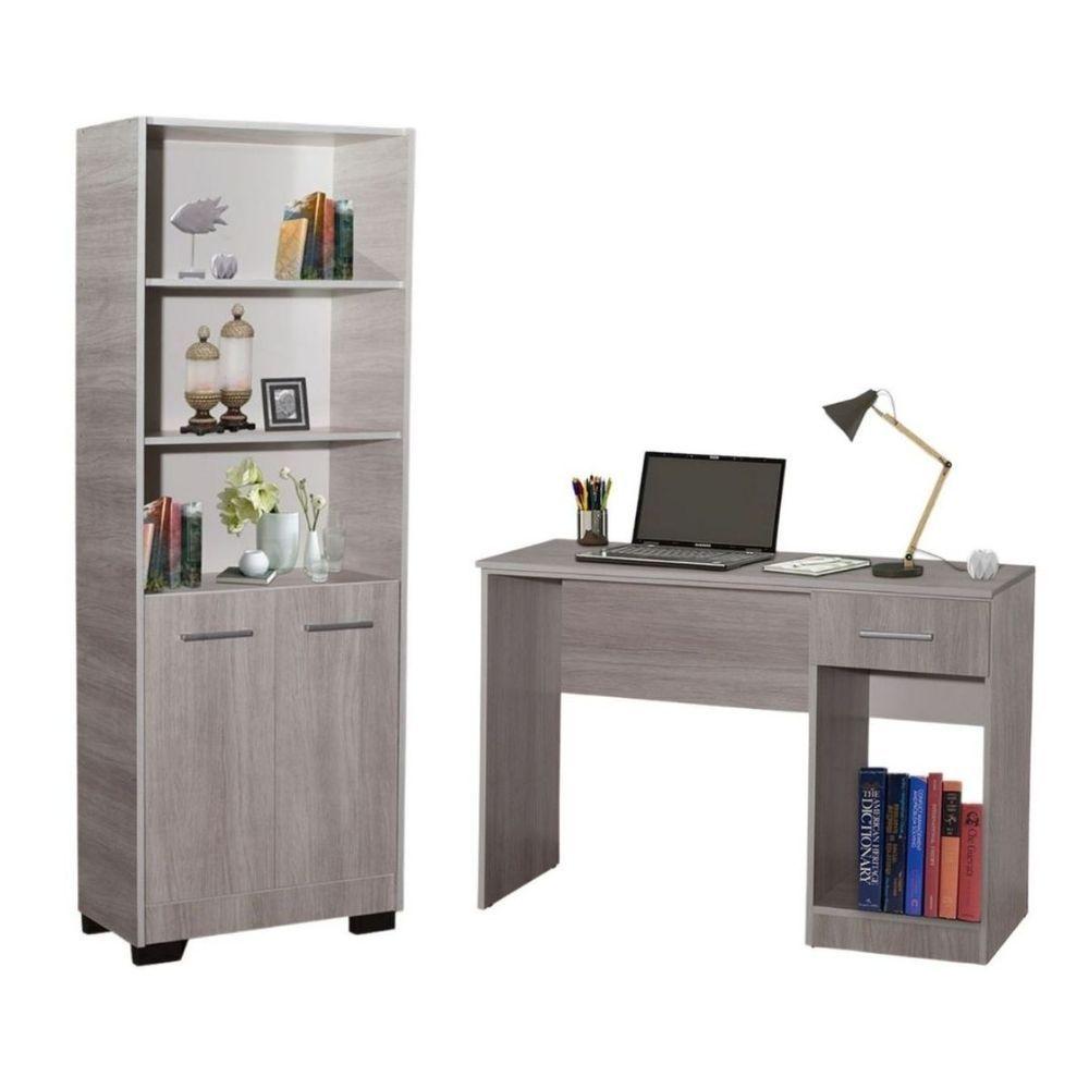 Kit Estante Para Livros Mesa Escrivaninha Giovana Natural Com Porta