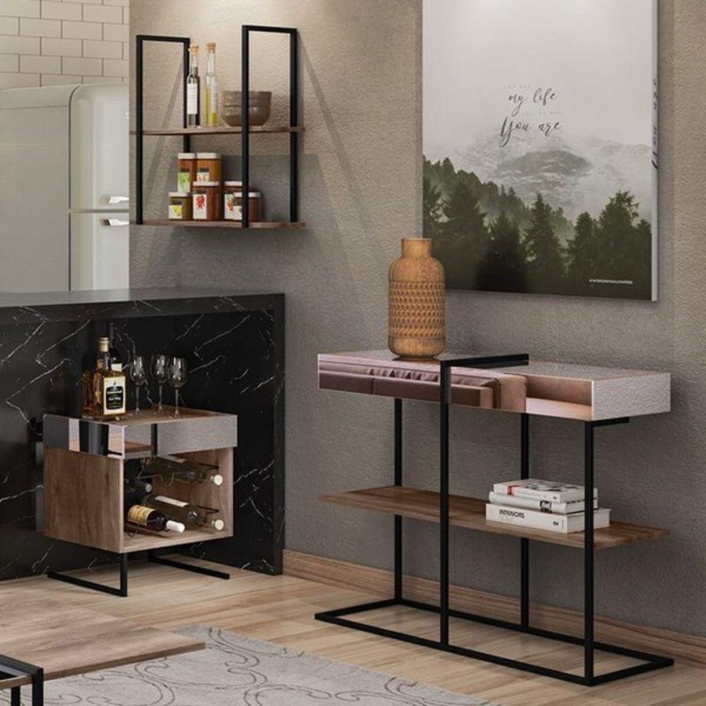 Kit Aparador Adega E Prateleira Aurora Demolição Preto