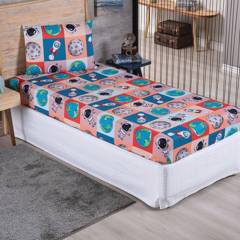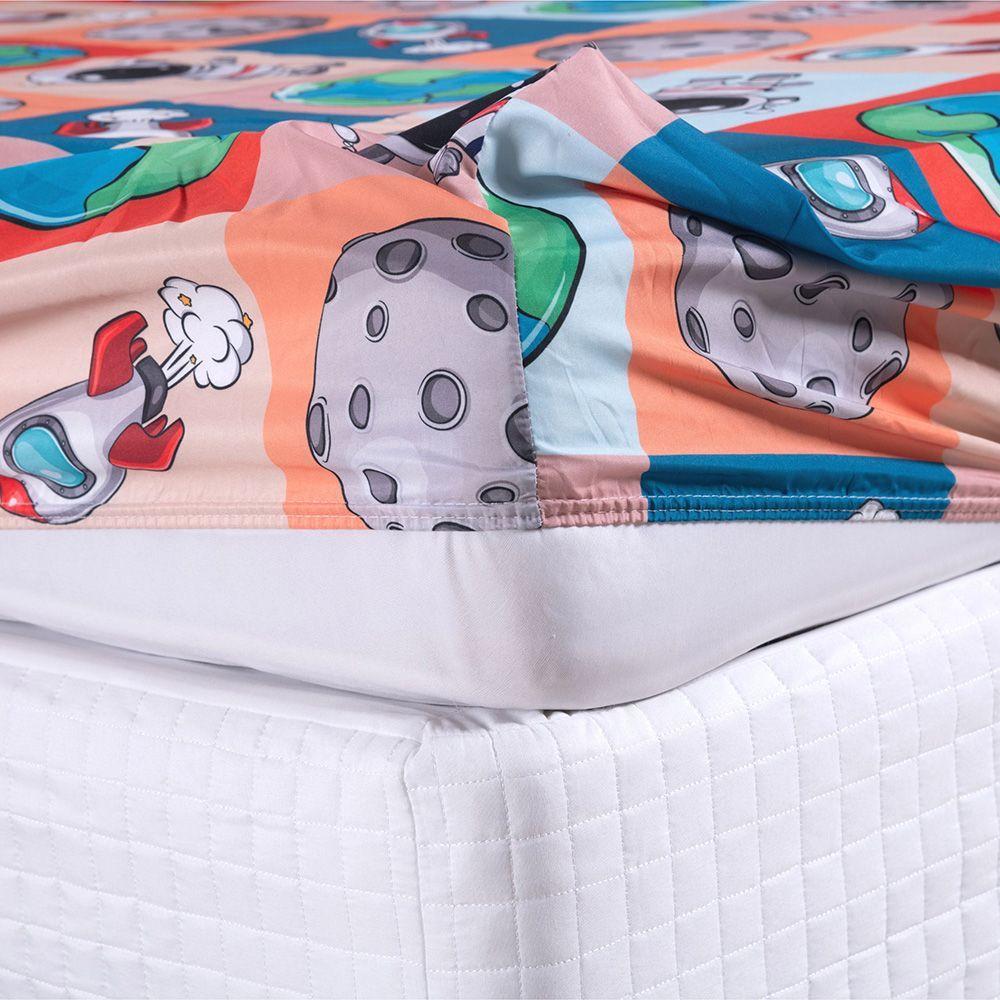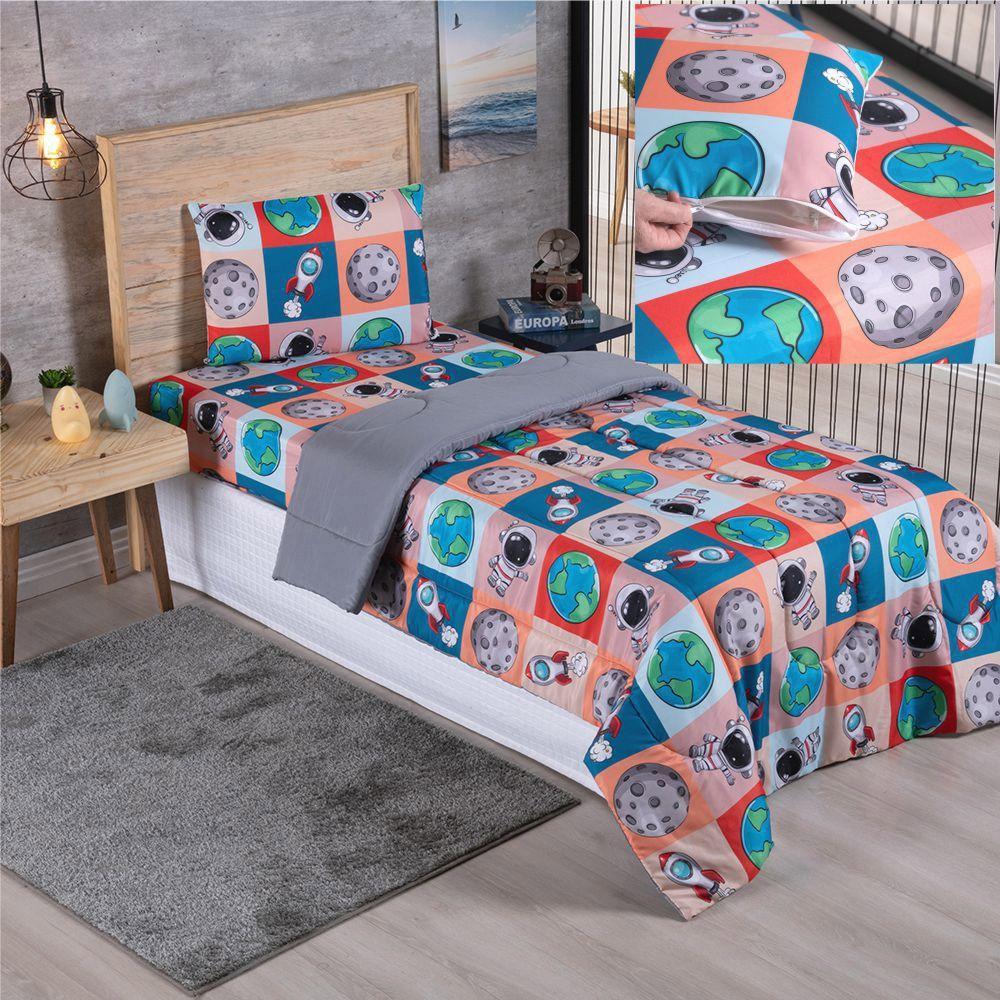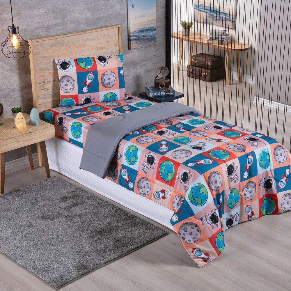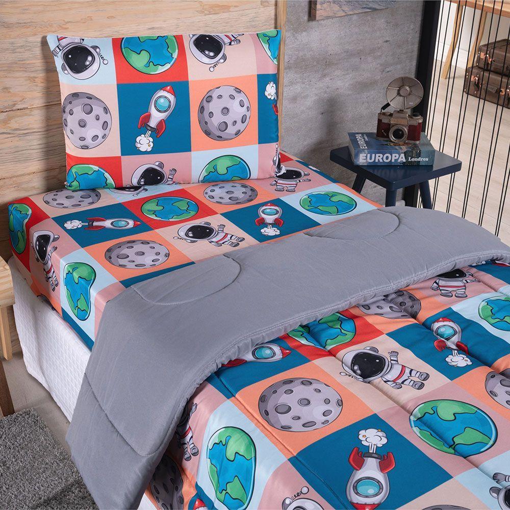 Kit Coordenado Edredom Com Lençol Solteiro Alegria - Astronauta - 100% Poliéster