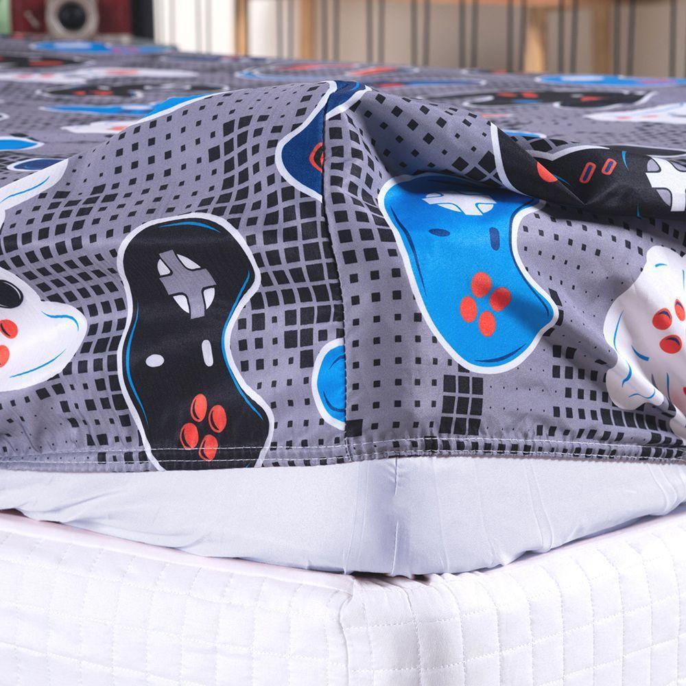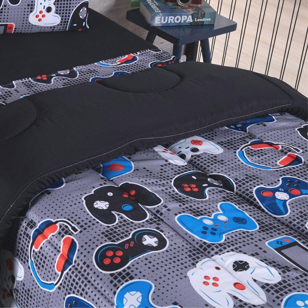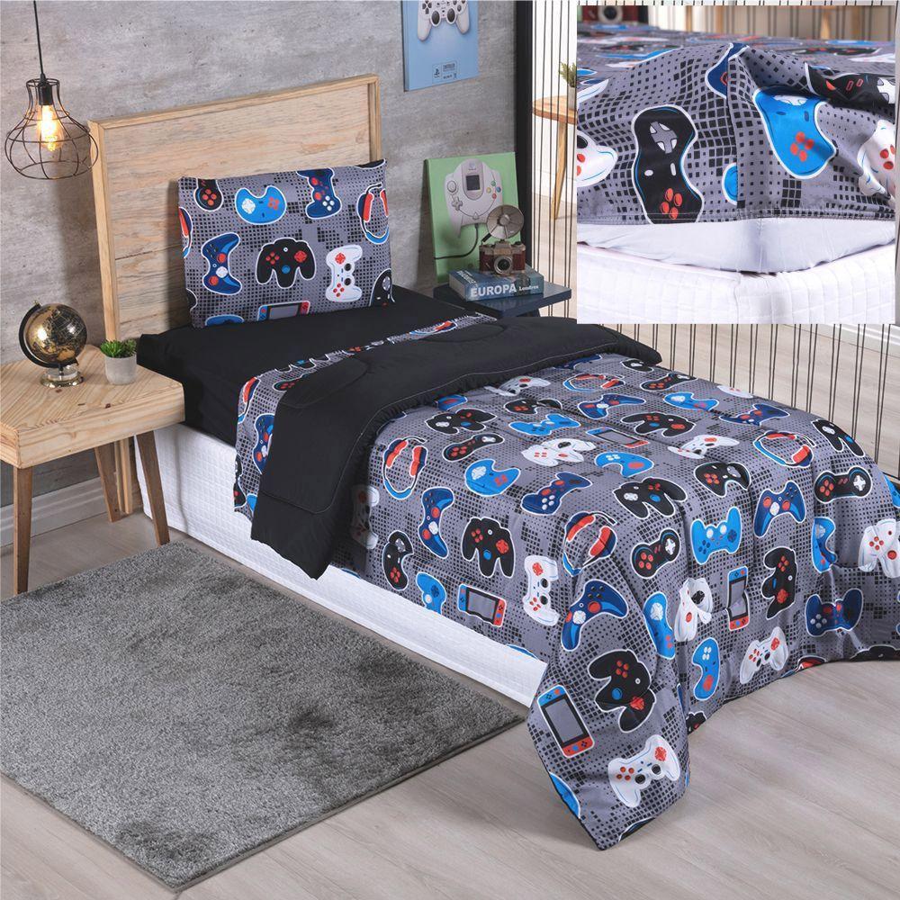 Kit Coordenado Edredom Com Lençol Solteiro Alegria - Play Game - 100% Poliéster