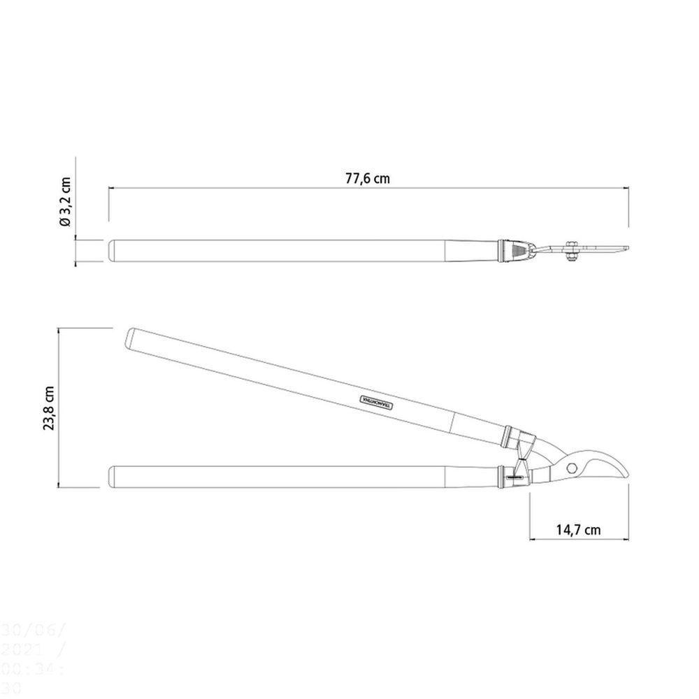 Tesourão De Poda Tipo Bypass Tramontina Em Aço Com Cabo De Madeira 60 Cm TramontinaTesourão de Poda Tipo Bypass Tramontina em Aço com Cabo de Madeira 60 cm Tramontina -Você não precisa passar trabalho para cortar galhos mais grossos ou de difícil acesso na hora de podar as plantas do seu jardim. Para facilitar esse trabalho desenvolvemos o tesourão de poda tipo bypass Tramontina em aço com cabo de madeira 60 cm. Com ele será mais fácil cortar os galhos mais altos ou que se encontram em meio a copa da árvore. O seu cabo longo e sua lâmina afiada e de alta qualidade fazem com que a força necessária para o corte seja muito menor. Isso garante maior precisão e acabamento ao seu trabalho.Orientações- Lâminas em aço carbono temperado para um corte preciso e macio.- Cabos de madeira com 60 cm.- Batente plástico.- Eficiente para galhos com diâmetro até 30 mm.- Tecnologia Bypass (corte cruzado). Indicado para galhos verdes. Durante o corte, ocorre o cruzamento entre lâmina e contra-lâmina. Possibilita um corte preciso e sem rebarbas, que não deixa marcas no galho e facilita a cicatrização.Características GeraisEAN137891117030881DUN1417891117030888NCM8201.60.00Peso Líquido1,2100 kg.Peso Bruto1,3080 kg.Metragem0,006813 m³.Dimensões Embalagem (Compr. X Larg. X Alt.)830x 230x 33 mm.Dimensões Produto (Compr. X Larg. X Alt.)776x 238x 32 mm.Cor 1F0E68C HexaObservações- Destinada a poda de galhos mais grossos ou duros e galhos altos ou de difícil acesso.- Técnica adequada de poda: O corte deve ser limpo, a 6 mm da união do brote.- Conservar a ferramenta limpa, secando-a depois de lavá-la. Aplique fina camada de óleo sobre as lâminas e articulações.- Cuidado: A lâmina é afiada. O contato pode resultar lesões. Manuseie com cuidado e mantenha fora de alcançe das crianças.- Para descarte dos produtos e embalagens siga as orientações de reciclagem vigentes.Características Gerais do Produto:Garantia: - 1 Ano