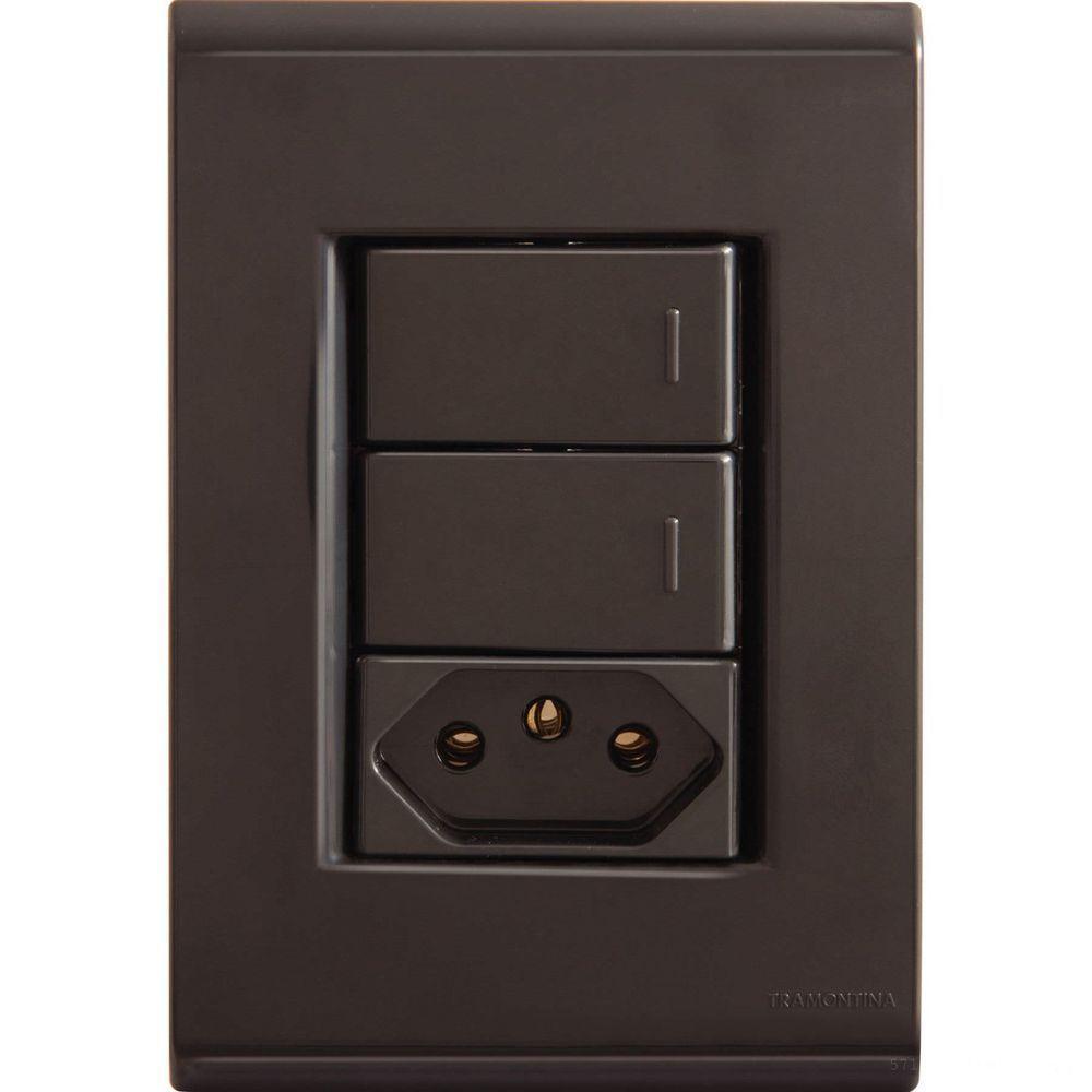 Conjunto 4x2 Com 2 Interruptores Simples 10 A 250 V E 1 Tomada 2p+t 10 A 250 V Tramontina Liz Grafit TramontinaConjunto 4x2 com 2 Interruptores Simples 10 A 250 V e 1 Tomada 2P+T 10 A 250 V Tramontina Liz Grafit Tramontina -Conjunto 4x2 com 2 Interruptores Simples 10 A 250 V e 1 Tomada 2P+T 10 A 250 V Tramontina Liz GrafiteA qualidade, versatilidade e a beleza que você busca em seus projetos elétricos está presente em todos os detalhes do conjunto 4x2 com 2 interruptores simples 10 A 250 V e 1 tomada 2P+T 10 A 250 V Tramontina Liz grafite. Com sistema modular com gradual ajuste entre a placa e o suporte, ele proporciona um acabamento perfeito da placa com a parede, além de ter fixação que não fica aparente. Sua fabricação é em termoplástico com acabamento brilho, material que não retém poeira e agrega qualidade e praticidade. Além dessas características, o conjunto possui furo oblongo que facilita a fixação e a regulagem da placa à parede e furos específicos para a fixação em paredes de madeira! ;Acabamento brilho na cor grafite.Cuidados com o produtoA instalação e segurança: É importante que o produto seja instalado por profissional habilitado. Antes de instalar, desligue a energia elétrica.Garantia10 anos (90 dias de garantia legal acrescidos de 09 anos e 09 meses de garantia contratual) para vícios ou defeitos de fabricação.Características Gerais do Produto:Garantia: - 10 Anos