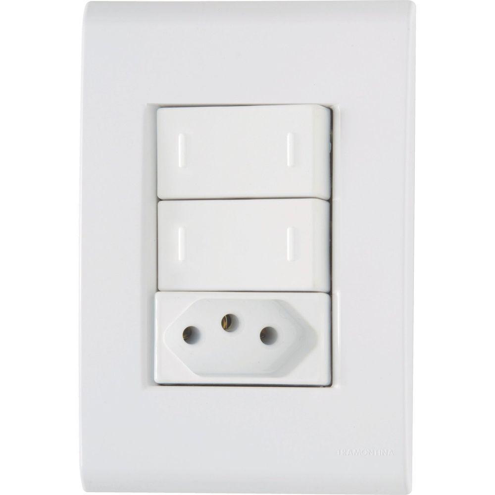 Conjunto 4x2 Com 2 Interruptores Paralelos 10 A 250 V E 1 Tomada 2p+t 20 A 250 V Tramontina Liz Bran TramontinaConjunto 4x2 com 2 Interruptores Paralelos 10 A 250 V e 1 Tomada 2P+T 20 A 250 V Tramontina Liz Branco Tramontina -Com o Conjunto 4x2 com 2 Interruptores Paralelos 10 A 250 V e 1 Tomada 2P+T 20 A 250 V Tramontina Liz Branco você ilumina seus ambientes e liga equipamentos de maneira funcional e prática. Produzido em termoplástico branco, ele vai garantir maior praticidade e proporcionar um acabamento perfeito entre a placa e a parede, sem deixar frestas e vincos na instalação. Além disso, possui furo oblongo que facilita a fixação e a regulagem da placa à parede e evita que ela fique desalinhada. Sua fixação não é aparente e pode ser utilizada tanto em paredes de alvenaria, quanto em paredes de madeira. A placa ainda pode ser trocada por outras cores da linha, garantindo maior versatilidade. Deixe sua casa equipada e completa com a Tramontina!Orientações.ObservaçõesA instalação e segurança: É importante que o produto seja instalado por profissional habilitado. Antes de instalar, desligue a energia elétrica.Características GeraisEAN137891435054897DUN1417891435054894NCM8536.69.10Peso Líquido0,0910 kg.Peso Bruto0,0990 kg.Metragem0,000600 m³.Dimensões Embalagem (Compr. X Larg. X Alt.)150x 100x 40 mm.Dimensões Produto (Compr. X Larg. X Alt.)120x 83x 42 mm.Cor 1FFFFFF HexaCaracterísticas Gerais do Produto:Garantia: - 1 Ano
