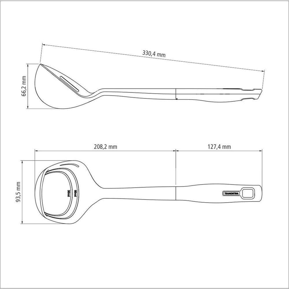 Concha Tramontina Verano Com Bojo Em Nylon E Cabo De Polipropileno ônix TramontinaConcha Tramontina Verano com Bojo em Nylon e Cabo de Polipropileno Ônix Tramontina -As possibilidades de sabor na cozinha são inúmeras. E com a Concha Tramontina Verano com Bojo em Nylon e Cabo de Polipropileno Ônix ficou muito mais fácil servir sopas, feijão e cremes. Com escala de medidas, rasgo para escoar líquidos, furo para pendurar, bojo produzido em nylon e cabo ergonômico de polipropileno, ela vai te ajudar a ganhar ainda mais elogios. A praticidade não ficou esquecida, já que o item pode ir à máquina de lavar louças. Um utensílio indispensável em sua cozinha!OrientaçõesConcha de nylon, que resiste até uma temperatura de 180 °C.Cabo de polipropileno com furo passante possibilitando que seja pendurado na sua cozinha.Utensílio ideal para uso em panelas com revestimentos antiaderentes e cerâmicos, pois não danifica o produto.Pode ir à máquina de lavar louças facilitando seu dia a dia.Características GeraisEAN137891112262744DUN1417891112262741NCM3924.10.00Peso Líquido0,1150 kg.Peso Bruto0,1200 kg.Metragem0,001843 m³.Dimensões Embalagem (Compr. X Larg. X Alt.)95x 50x 388 mm.Dimensões Produto (Compr. X Larg. X Alt.)330x 93x 66 mm.Cor 1333F48 HexaCor 2707372 HexaObservaçõesAntes da primeira utilização, lave bem a peça e seque-a.Para maior durabilidade do produto recomenda-se secar bem antes de guardar, mesmo após lavagem em máquina.Para descarte do produto e embalagem siga as orientações de reciclagem vigentes.Características Gerais do Produto:Garantia: - 1 Ano