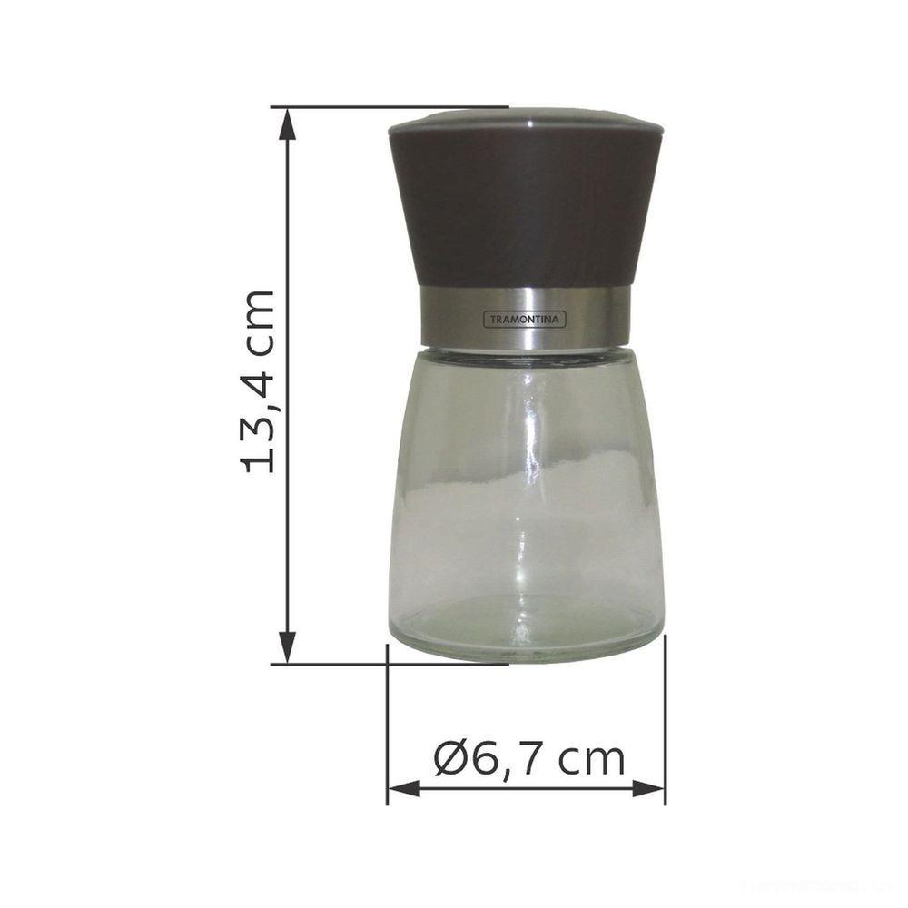Moedor De Pimenta E Sal Tramontina Utilitá Em Cerâmica E Vidro TramontinaMoedor de Pimenta e Sal Tramontina Utilitá em Cerâmica e Vidro Tramontina -Moedor de Pimenta e Sal Tramontina Utilitá em Cerâmica e VidroPara temperar carnes e outros alimentos na medida certa e com muita praticidade, o moedor de pimenta e sal Tramontina Utilitá em cerâmica e vidro é a peça chave. Ele conta com moedores em cerâmica ajustáveis para o tamanho do grão e permite a moagem do grão conforme seu gosto e necessidade. Suas engrenagens são resistentes, o recipiente é de vidro com tampa de plástico e ele tem capacidade para 200 gramas de sal ou 100 gramas de pimenta. A escolha certa para caprichar no tempero e dar mais sabor às suas receitas!Moedores de cerâmica com regulador de tamanho do grão, para que seja ajustado conforme seu gosto. Possui engrenagens de alta resistência, proporcionando maior durabilidade. Recipientes de vidro e tampas de plástico. Capacidade de 200 gr para sal e 100 gr para pimenta.Cuidados com o produtoAntes da primeira utilização, lave bem a peça e seque-a.Tenha cuidado ao manusear o recipiente. Por ser de vidro, poderá quebrar ao sofrer quedas ou impactos.Para maior durabilidade do produto recomenda-se lavar manualmente com detergente ou sabão neutros.Seque bem antes de guardar ou antes de repor o tempero.Para descarte do produto e embalagem siga as orientações de reciclagem vigentes.Para abastecer: desenrosque o recipiente de vidro, segurando o anel de aço inox. Adicione o sal grosso ou a pimenta. Enrosque novamente o recipiente de vidro, segurando o anel de aço inox até que esteja firmemente fixado ao anel.Para moer: retire a tampa plástica transparente e posicione o moedor de cabeça para baixo. Com uma das mãos, segure a tampa e com a outra gire o recipiente de vidro no sentido horário para moer o tempero.Garantia90 dias para vícios ou defeitos de fabricação.Características Gerais do Produto:Garantia: - 3 meses Contra defeitos de fabricação