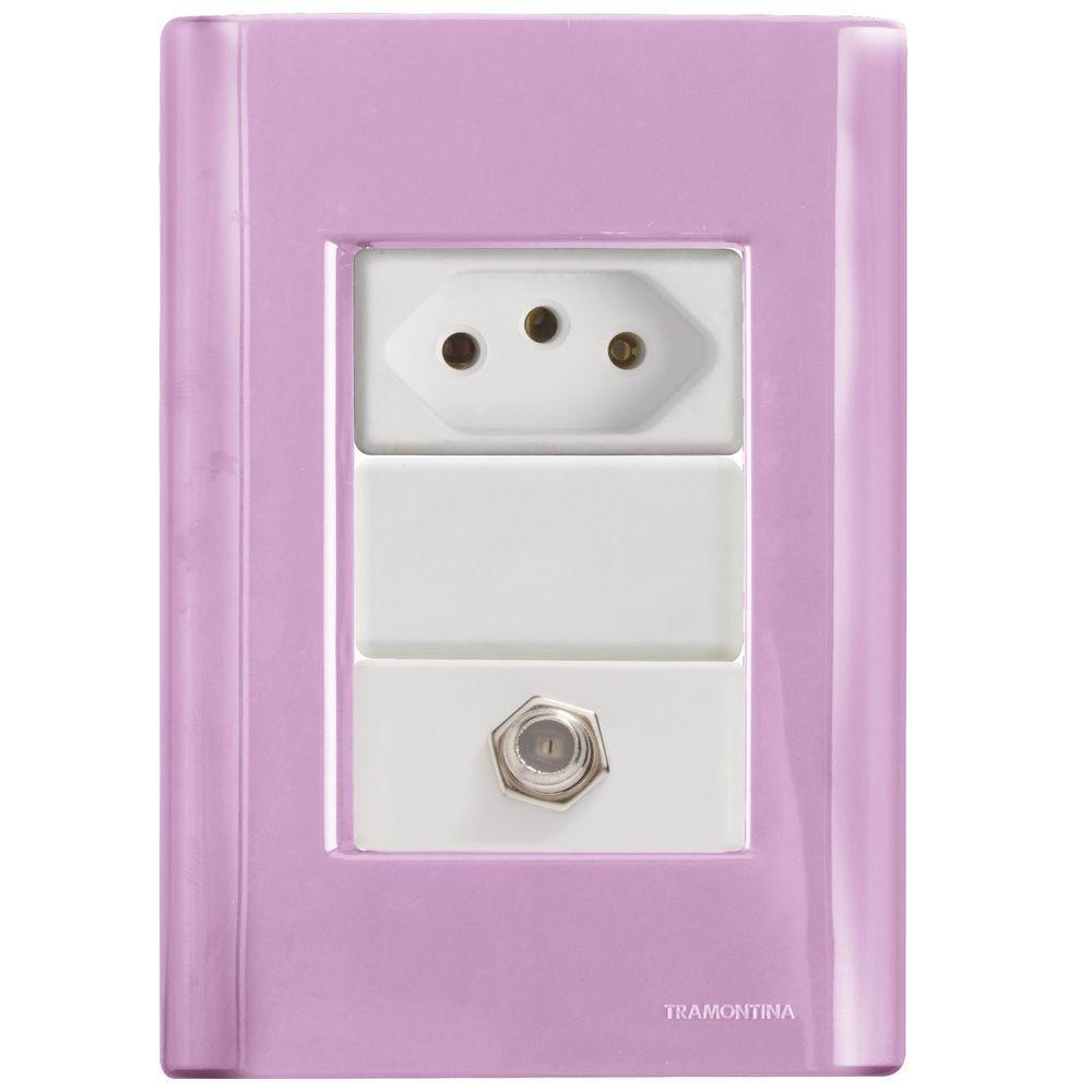 Cj Tomadas 10a E Tv Sat Coaxial Giz Rosa Tramontina Completo Pronto Tramontina