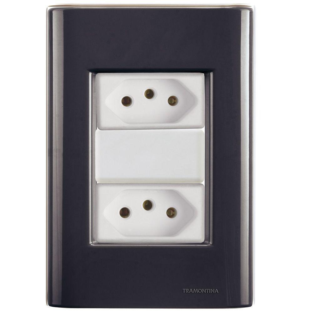 Cj Duas Tomadas Dupla 20a Giz Grafite Tramontina Completo Pronto Tramontina