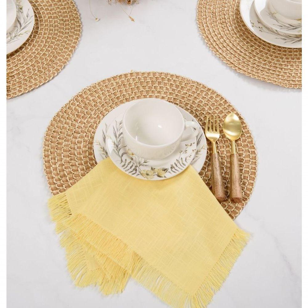 Jogo Americano Copa E Cia 6 Peças Toscana NaturalJogo Americano Copa e Cia 6 Peças Toscana Natural -Características Gerais do Produto: - Composição: 85% Fibra de Celulose; 15% Poliéster - Detalhes: Aspecto Natural.; Kit Contém 06 peças.; Produto Flexível e Vazado.; Armazenar o produto aberto e na horizontal; São práticas e versáteis - Cuidados: Limpar Manualmente, Armazenar em Local Seco e Arejado.; Não Torcer, Amassar, Dobrar ou Molhar Totalmente o Produto.; Evitar contato com objetos cortantes ou superaquecidos.; Não utilizar solventes, abrasivos ou alvejantes. - Dimensões (cm): Diâmetro: 38 cmAcompanha o produto: - 6 Peças de Jogo Americano Garantia: - Sem Garantia