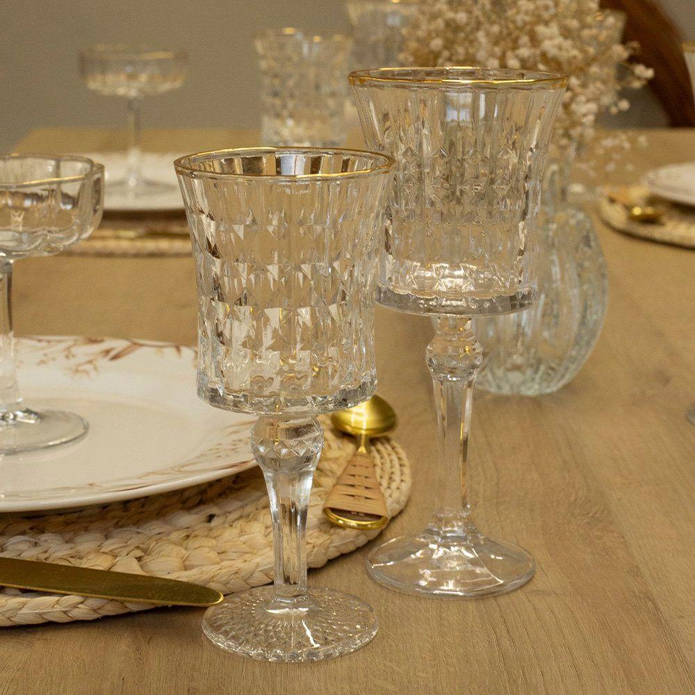 Jogo De Taças Copa E Cia 2 Peças Vitreo Com Filete Dourado 18 X 8 Cm