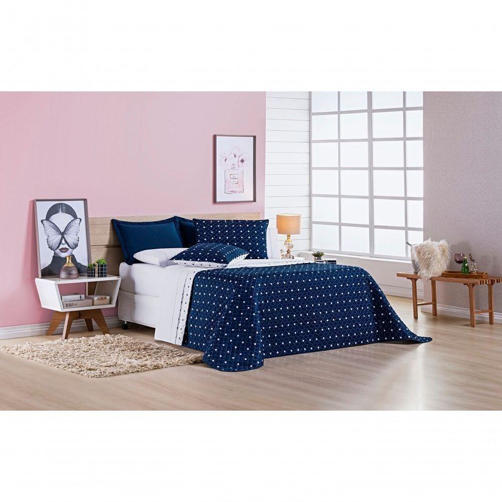 Cobre Leito + Jogo De Cama King + Jogo De Banho Petit Poá 12 Peças 100% Poliéster - Marinho
